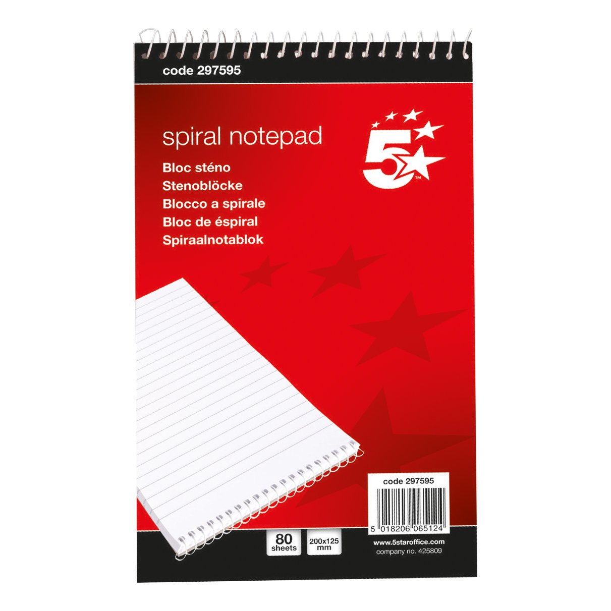 5 Star Office Shorthand Pad Wirebound 60gsm Ruled 160pp 127x200mm Red/White (Pack of 10)