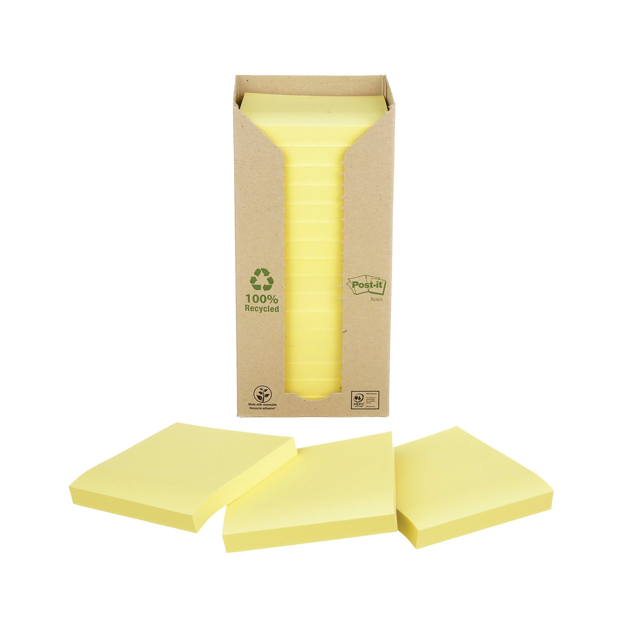 Post-it Notes Recycled Tower 76x76mm Cardboard Packaging Canary Yellow (Pack of 16) 654-1T