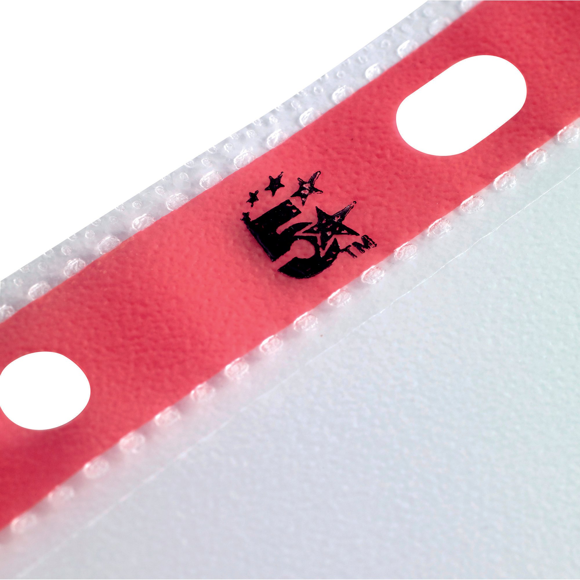 5 Star Office Punched Pocket Polypropylene Reinforced Red Strip Top Opening A4 Clear (Pack of 25)