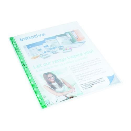 Initiative Green Spine Reinf Top Opening Plastic Punched Pockets A4 50 Micron Glass Clear Box 100