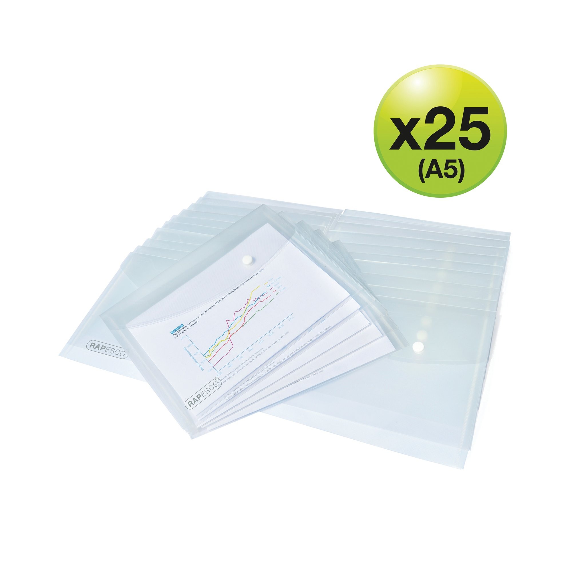Rapesco Eco Recycled Popper Wallet A5 Clear (Pack of 25) 1500