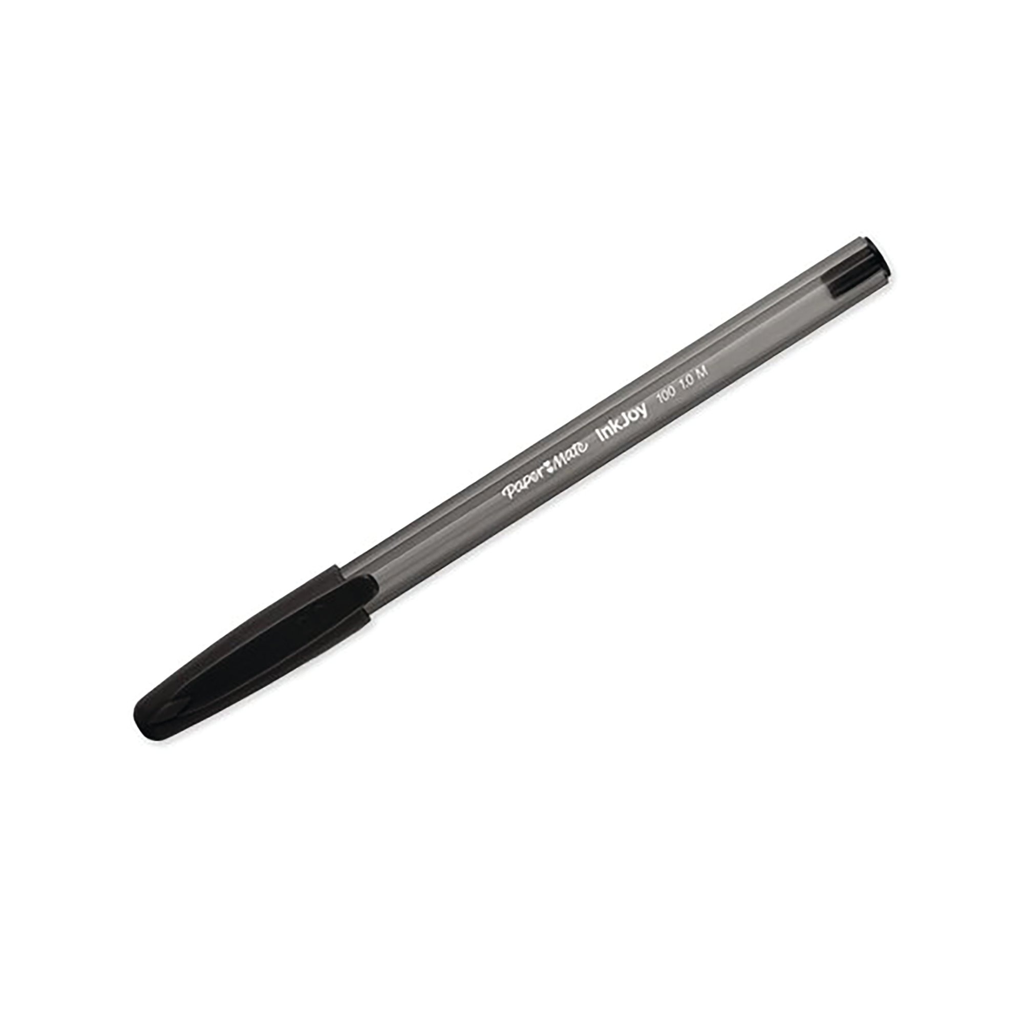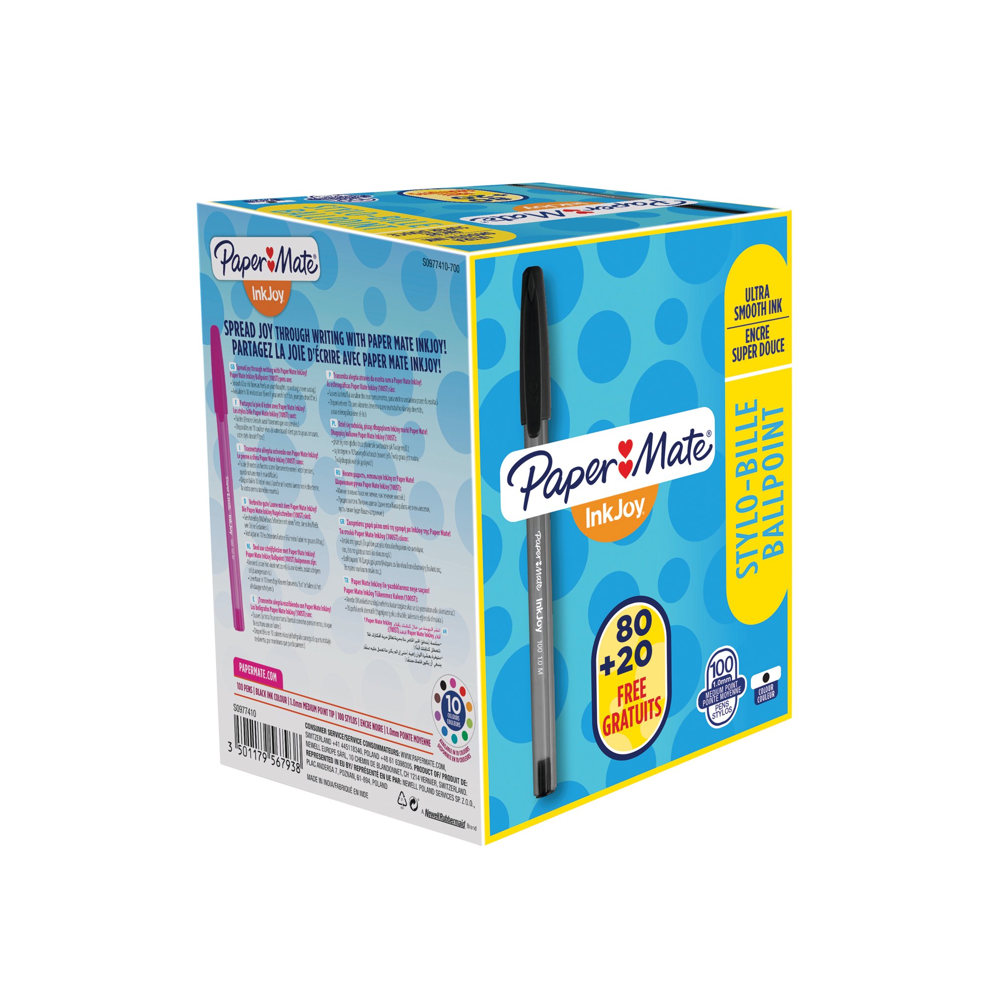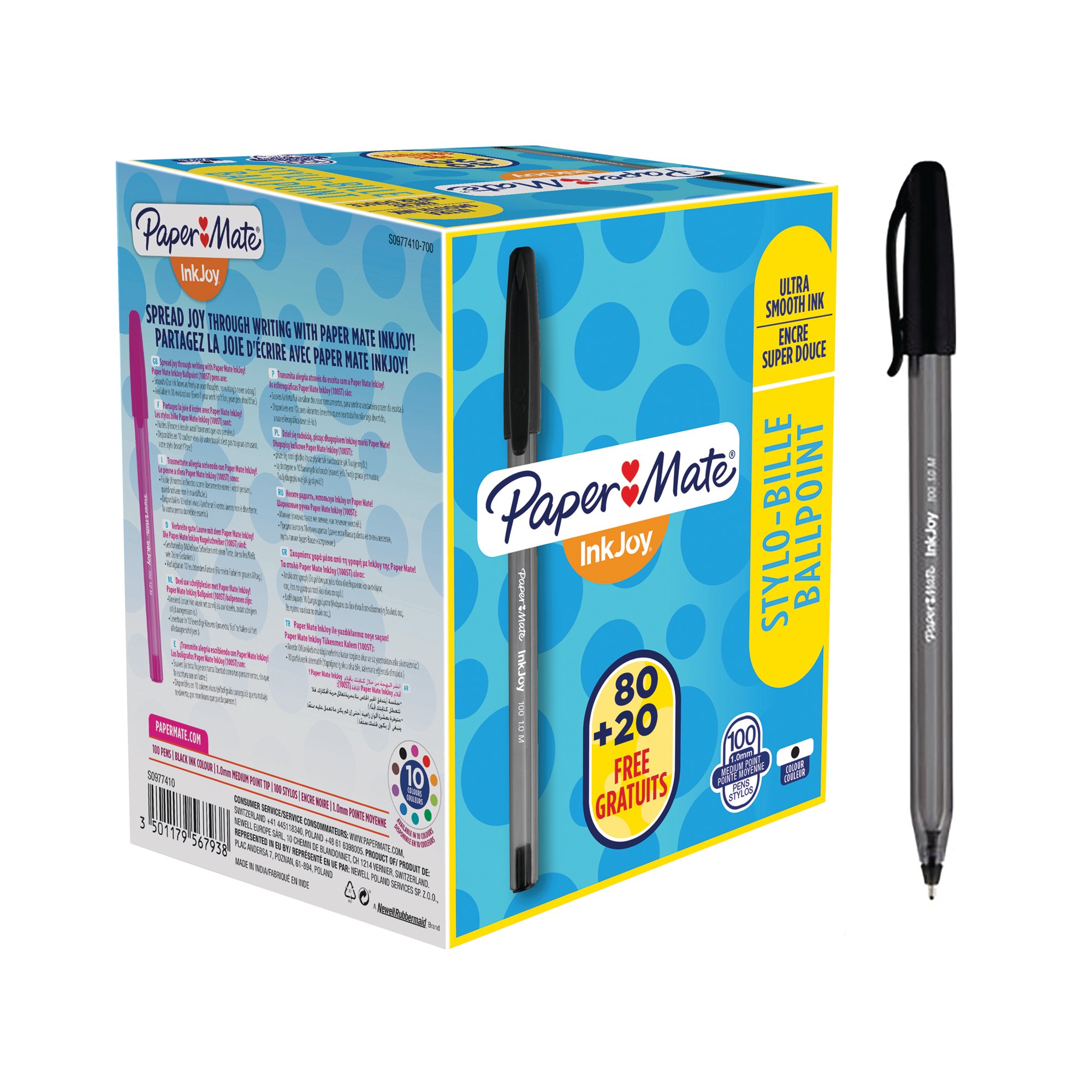 The PaperMate InkJoy system aims to put the joy back in writing with a unique low viscosity black ink that flows easier for smooth writing with less drag. It also features a improved nib that delivers clear and crisp lines. The InkJoy 100 has a neat triangular shape that provides extra comfort to your fingers and gives precise control for any kind of writing or drawing. The medium 1.0mm nib writes a 0.4mm line width. This value pack contains 100 black pens.