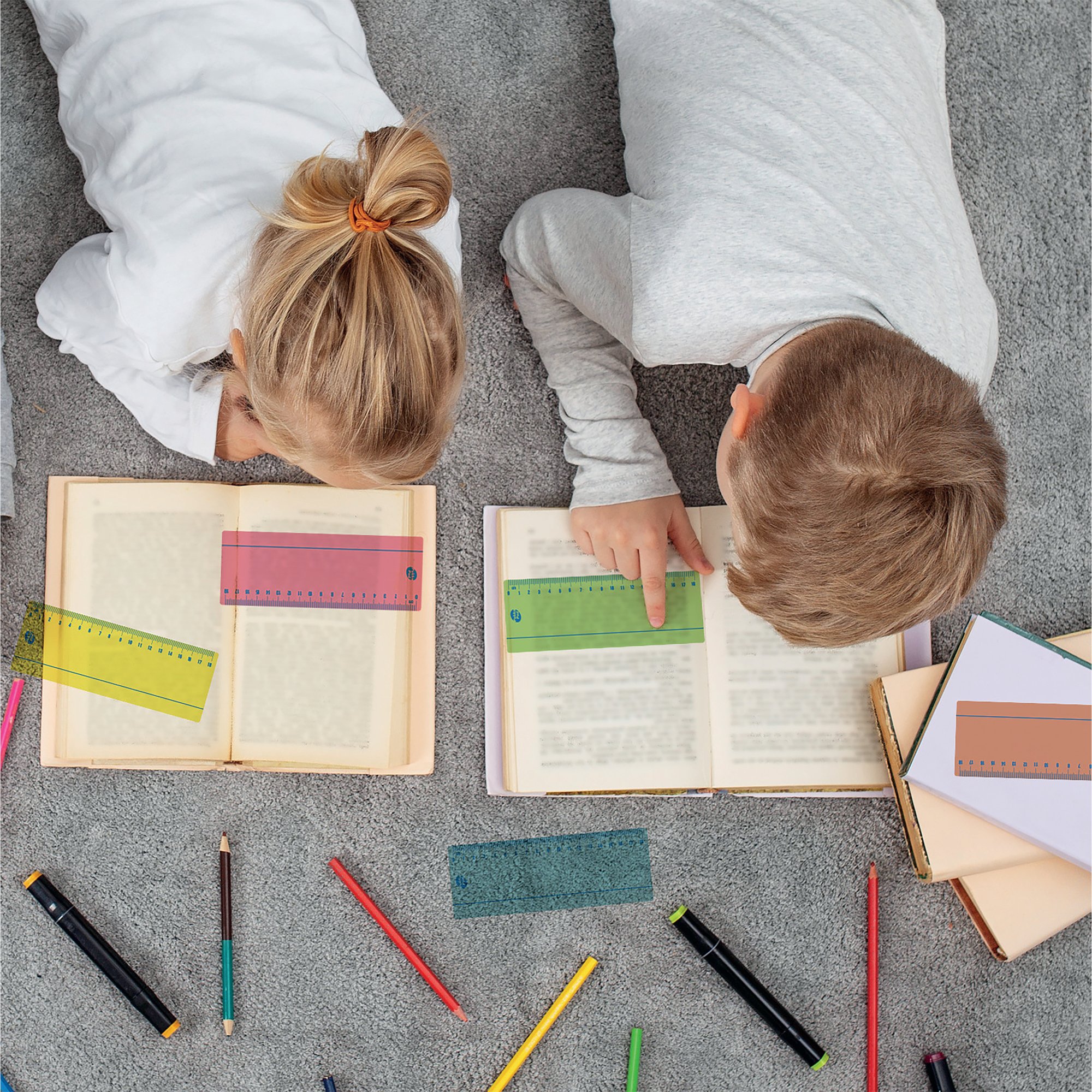 The??reading ruler helps to prevent visual stress and enhance focus whilst reading and writing. By using the reading ruler, users can minimise the symptoms associated with Irlen syndrome such as headaches, fatigue, and discomfort. The portable size, protective film and zip bag ensures the ruler stays in pristine condition and makes it an ideal companion for students moving between classes and professionals on the go. The rulers work by adjusting the colour contrast of the text, reducing visual distortions and minimising the impact of glare and light sensitivity. Colours may vary (assorted colours of: blue, green, pink, orange and yellow).