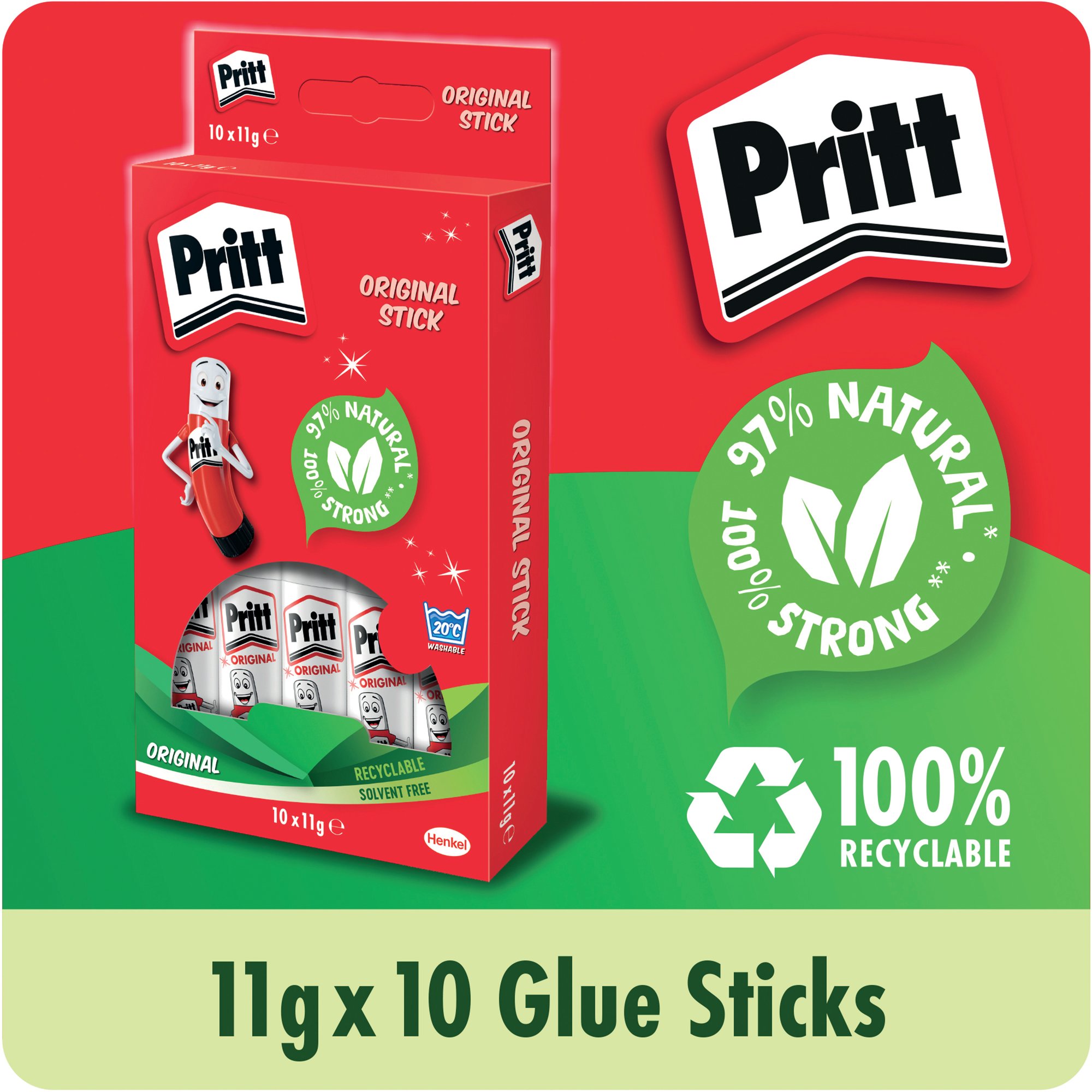 This solvent-free formula offers a strong and long-lasting adhesion while guaranteeing a solid initial tack and low paper wrinkling. Easy to apply, it is a high quality glue made with 97% natural ingredients and it is recyclable. Supplied in a value pack containing 10 sticks. Pritt Stick glue 11g stick is ideal for gluing papers and documents. This pack contains 10 x 11g sticks.