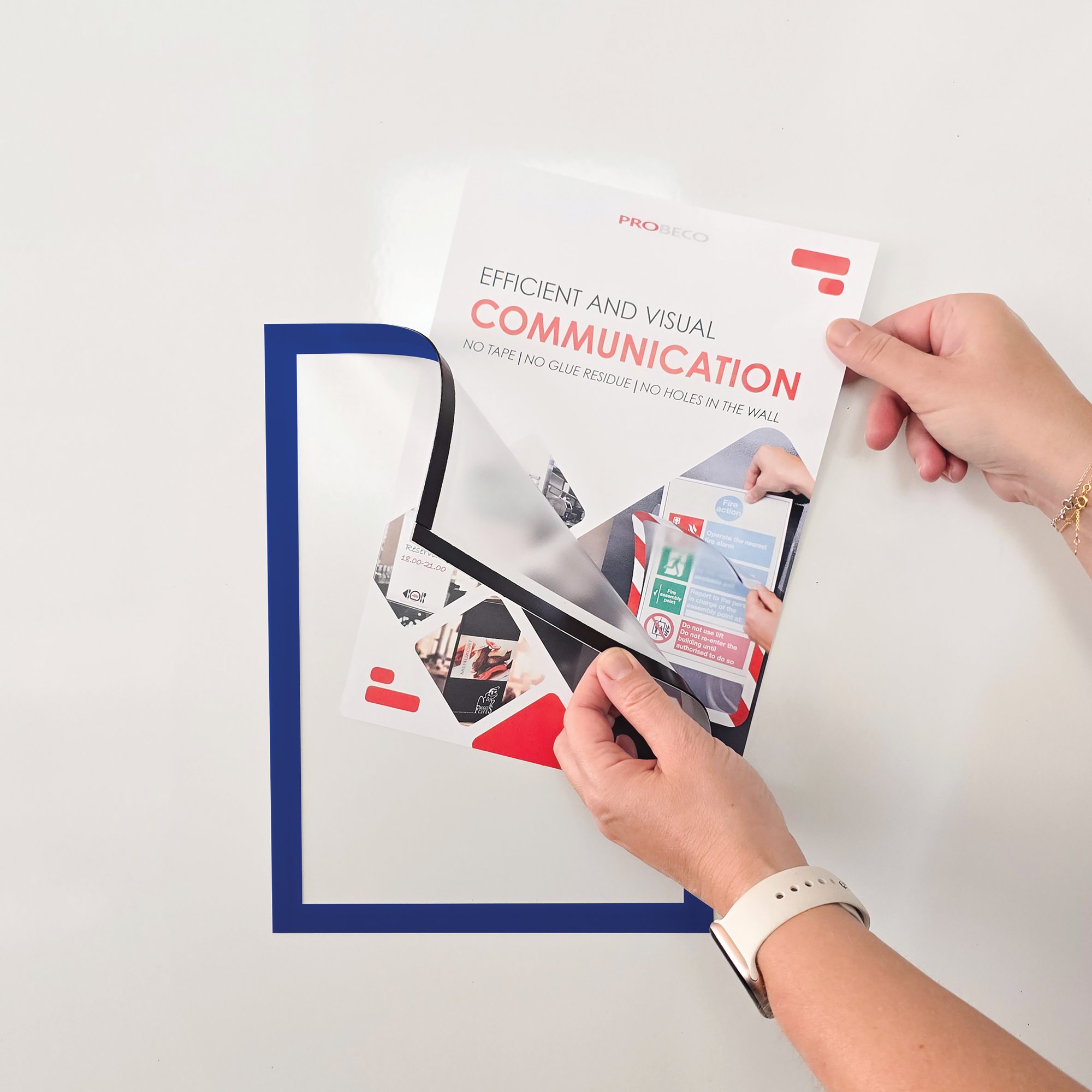 A4 magnetic stripped display frames that allows you to change information quickly and easily. Secures to the surface thanks to 4 magnetic strips on reverse. Swap out information in seconds with no fuss.