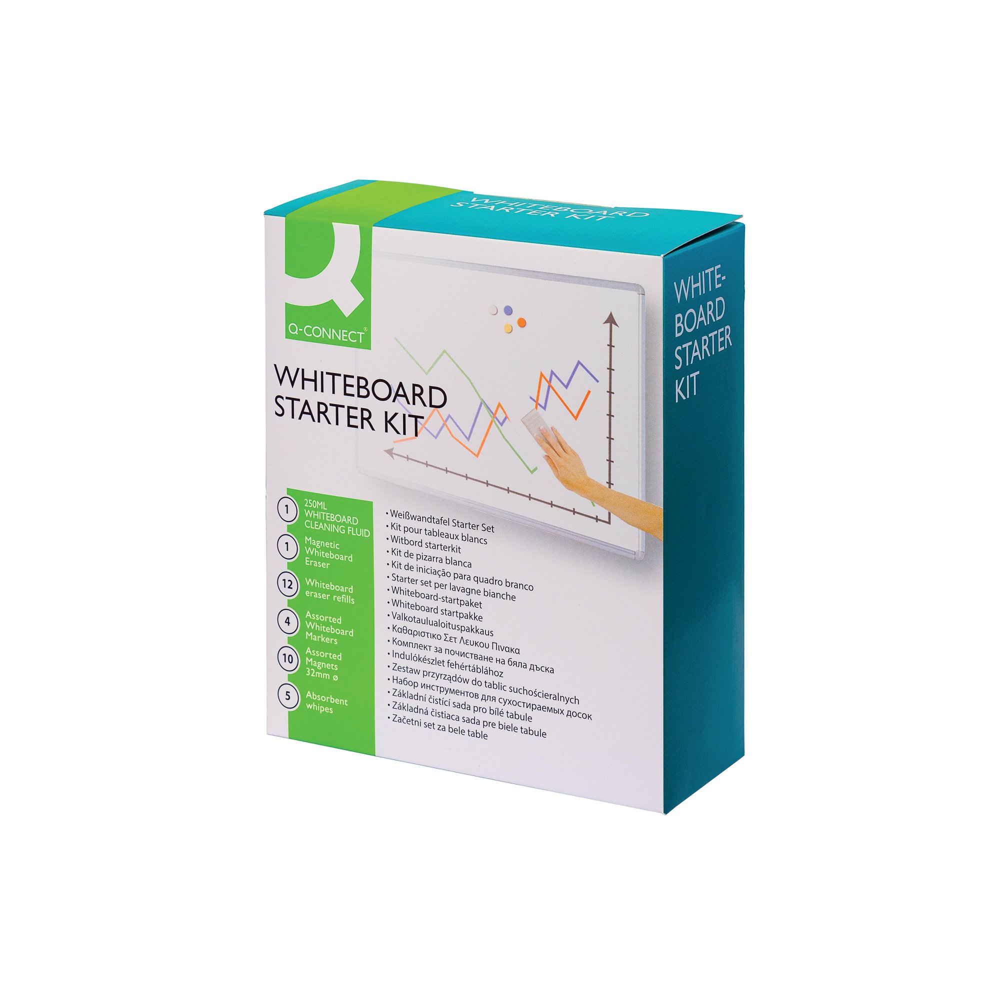 This kit contains everything that you need to make sure that you are getting the best out of your whiteboard. With 4 coloured pens, 10 assorted magnets, 5 absorbent wipes, cleaning fluid and a board wiper, you can be sure that you have all you need. You can guarantee that you can create your finest work with the ability to colour co-ordinate and easily attach documents to your board. Maintenance is easy with the cleaning products allowing you to keep your board at its very cleanest.