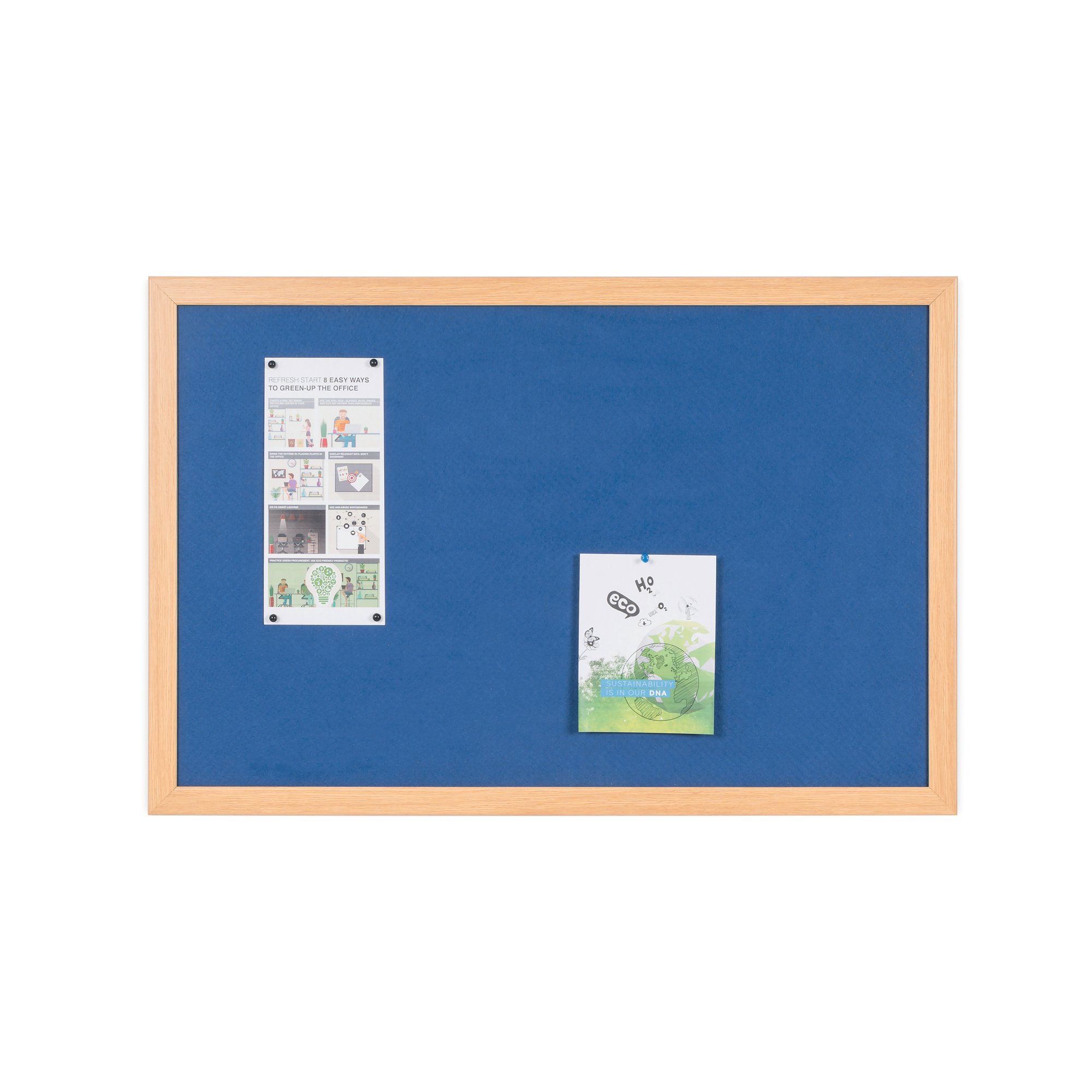 The Bi-Office Earth series provides you with high quality products that are designed to be environmentally friendly. This felt notice board contains over 55% post consmer and post industrial waste, ensuring that anything that can be reused, is reused. With a stylish oak effect frame and a felt surface that is suitable fo use with push-pins, this product is not only environmentally friendly, but stylish and practical as well.