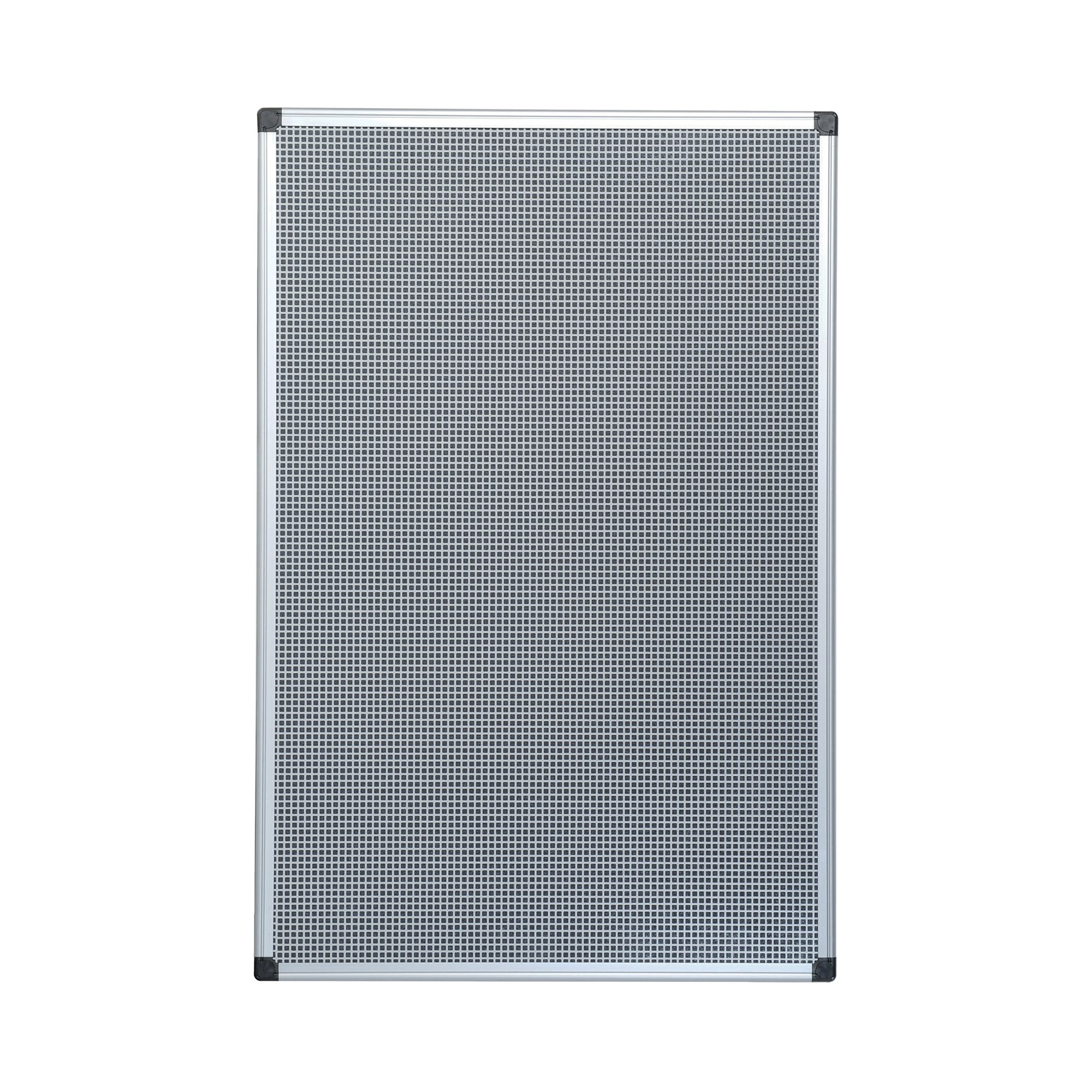 The Maya Combonet Board is a dual purpose noticeboard, perfect for any home or office setting, offering both pinning and magnetic options for displaying notes, photos, and other items. This sturdy board is made of lightweight, yet durable aluminium with a sleek, modern look that features an anodized finish and safe rounded edges. The 4-corner fixing system is simple and allows both vertical or horizontal wall mount. It is a useful tool for displaying reminders, memos, documents, and its magnetic surface is great for displaying photos, artwork, and other items. This noticeboard is a great way to stay organized and keep important information visible.