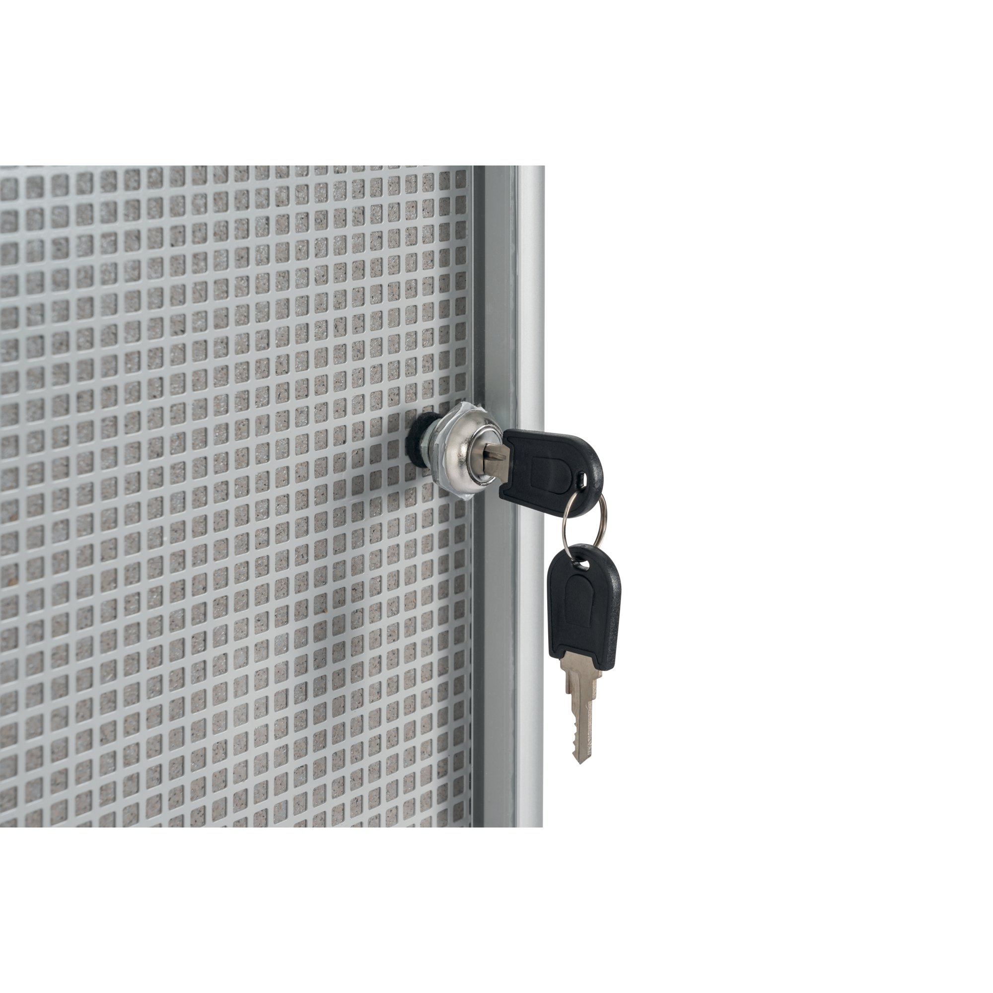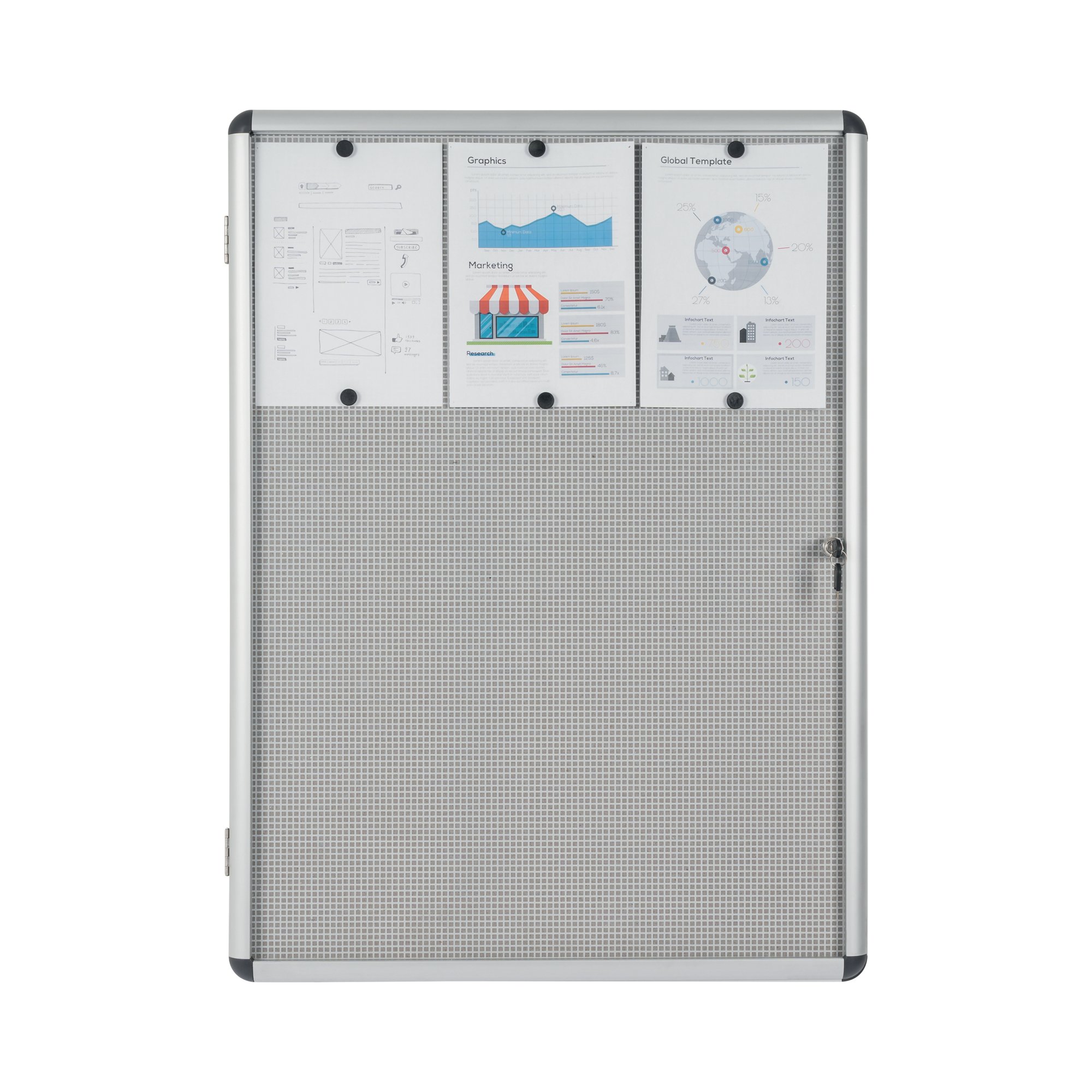Bi-Office Enclore lockable display cases are ideal to display important messages in corridors, schools or common areas. Make sure everyone is on the same page and acknowledges important information or any tasks that need to be considered. Add colour to increase the usability and perception of the display case. This is a strong, secure, and lightweight solution to display important notes, pictures, and so on, in the common areas of labs, schools, and other public spaces. The frame is made of aluminium, with rounded corners for increased safety. There is clear visibility of the displayed items due to the swinging acrylic door, which can be locked to protect the inside materials from hampering, manipulation, or the weather. This lockable board comes with 2 keys, so you can keep a key in a safe location, to use as a spare if the other one gets lost. The set also includes a wall mount kit for easy installation.