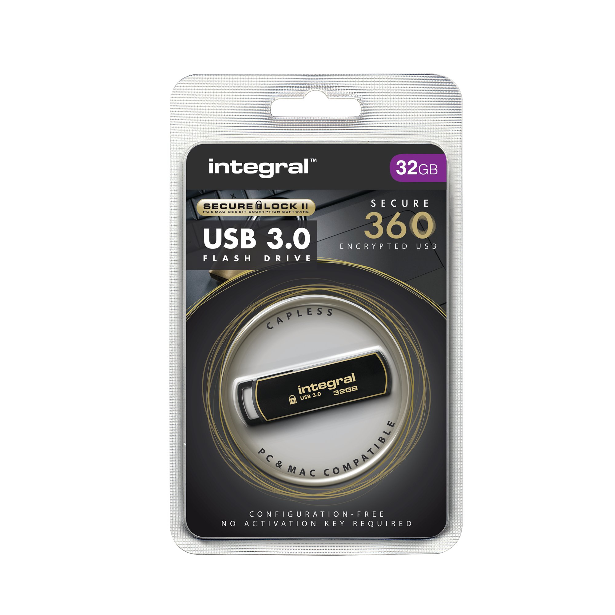 Integral Secure 360 Encrypted USB 3.0 32GB Drive IINFD32GB360SEC3