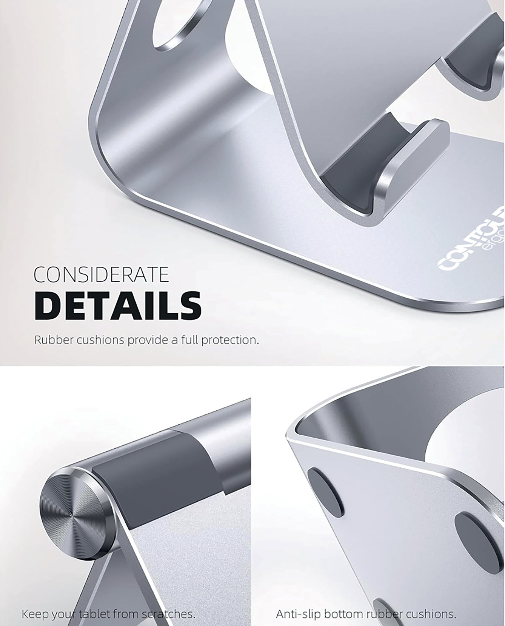 Contour Ergonomics Large Tablet/Phone Stand 4-13 Inches Silver CE10139