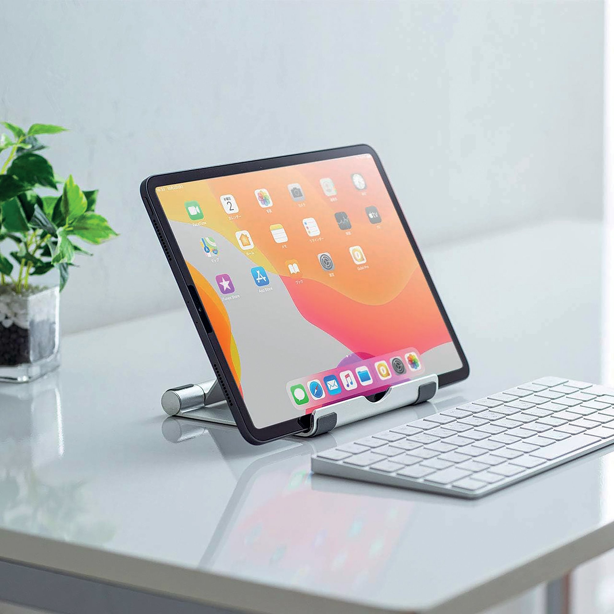 360 degree rotating aluminium tablet/mobile phone stand suitable for tablets/phones from 4 inch - 13 inch in silver
