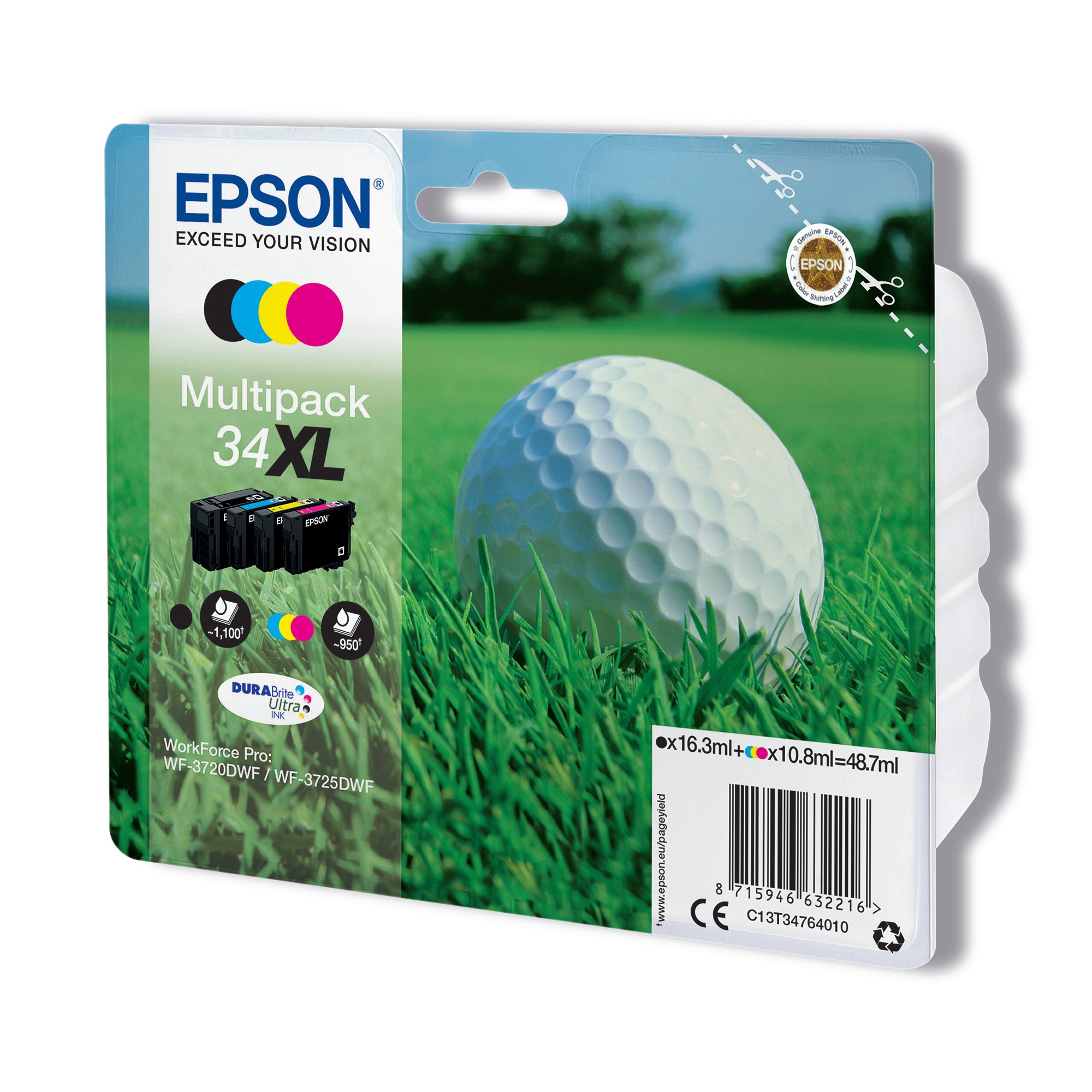 Epson 34XL Golf Ball DURABrite Ultra Ink Cartridge High Yield CMYK Multipack C13T34764010