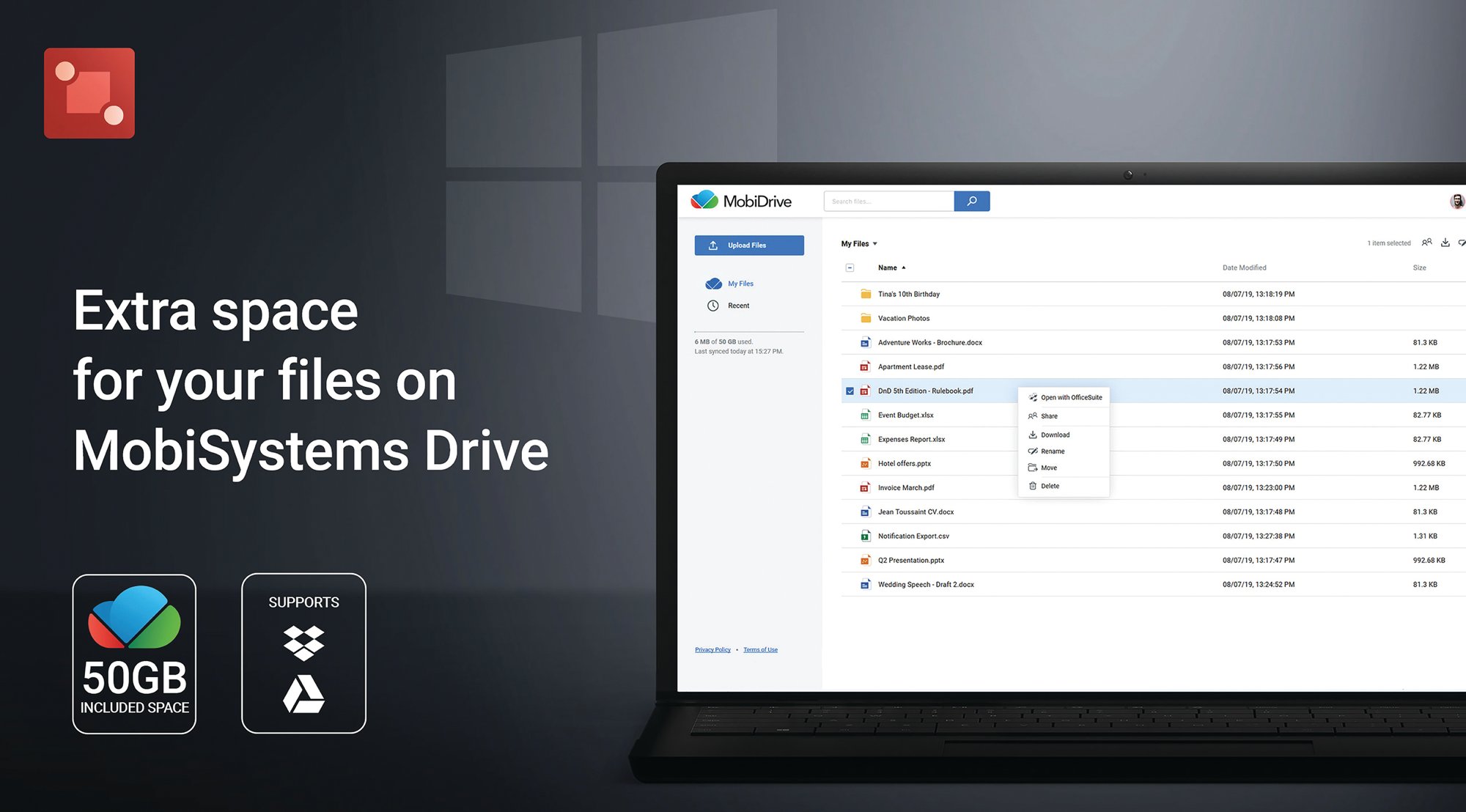 PDF Extra is your all-in-one professional PDF management and editing package. You can view, edit, sign and annotate PDF documents by working directly on the text and images. With PDF Extra, you can re-order the pages of a PDF with ease, fill in forms and sign them with your digital signature and password protect your sensitive documents. Continuous read mode and night mode help you to read PDFs easily and you can quickly convert your PDF files to Word, Excel and ePub formats. Make sure you take advantage of 50 GB of free storage on MobiDrive too, where you can save, organise and sync your documents across devices. This is a one-year licence for use on one Windows PC or laptop.