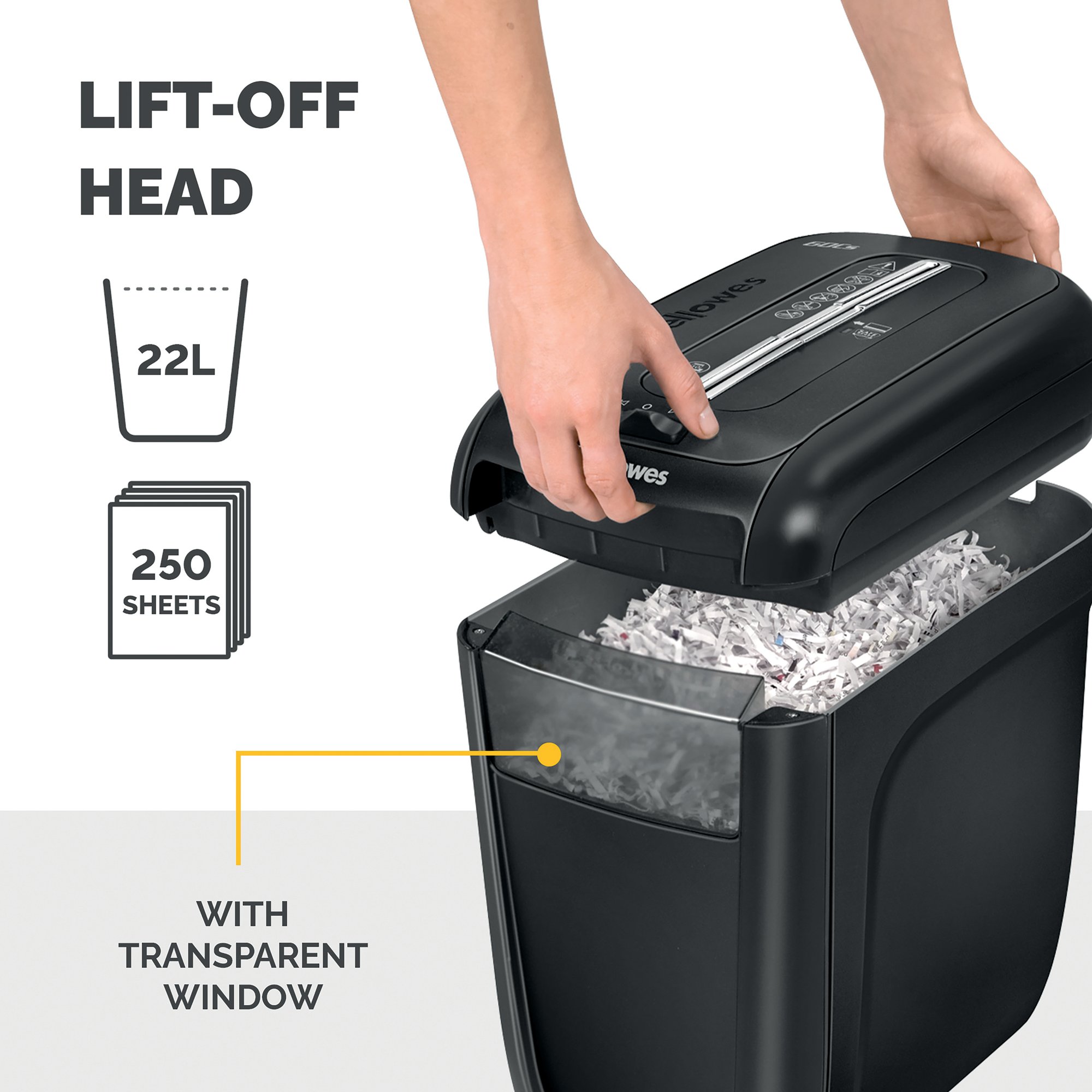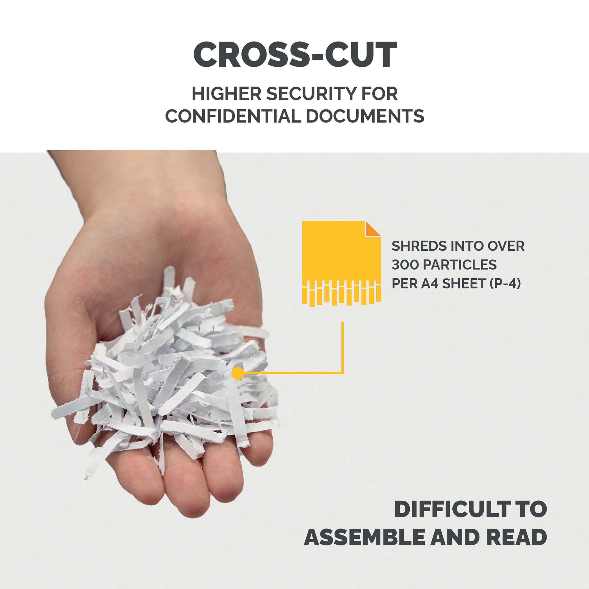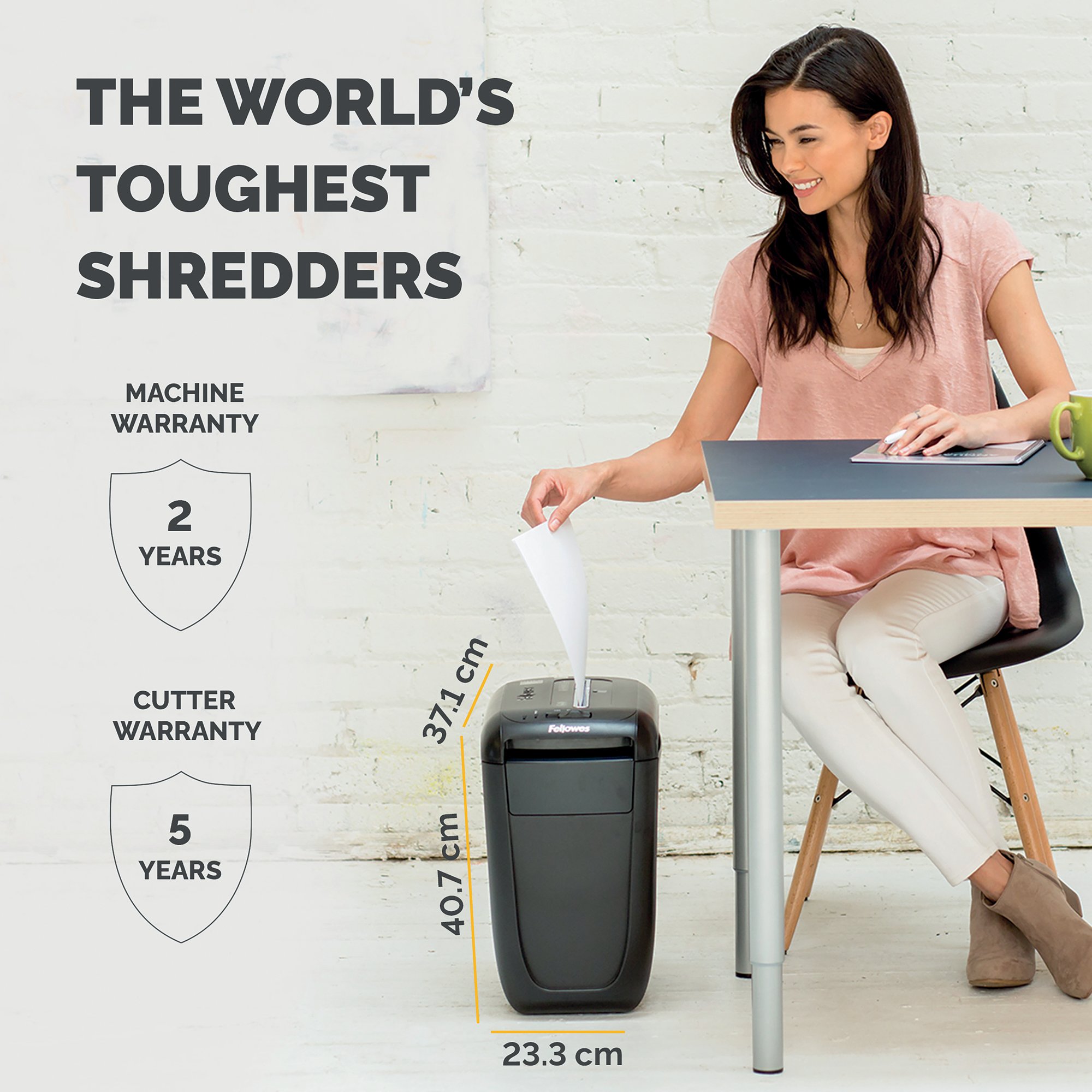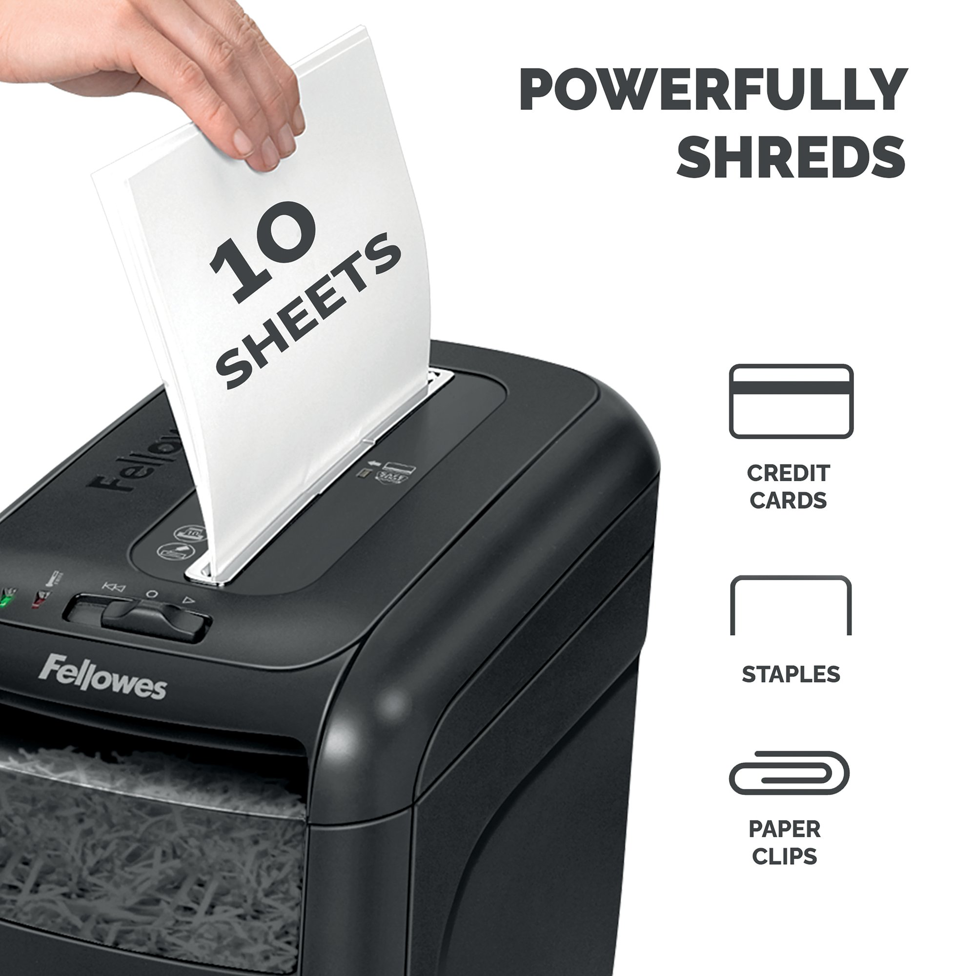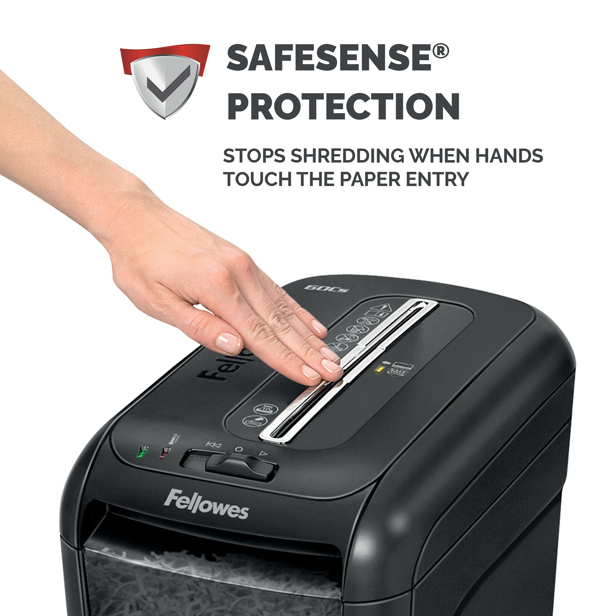 Looking for a secure and efficient way to destroy confidential data? The Fellowes 60Cs is a powerful cross-cut shredder that effortlessly shreds up to 10 sheets at once into tiny 4x50mm particles, making it significantly harder for thieves to access your personal information. Fellowes Jam Blocker technology ensures smooth operation, while SafeSense automatically cuts power to the cutters if your hands get too close.