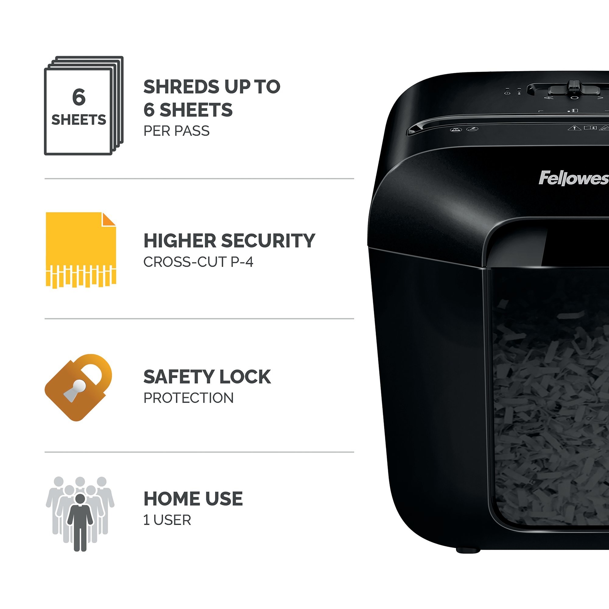 • Shreds up to 6 sheets of paper per pass