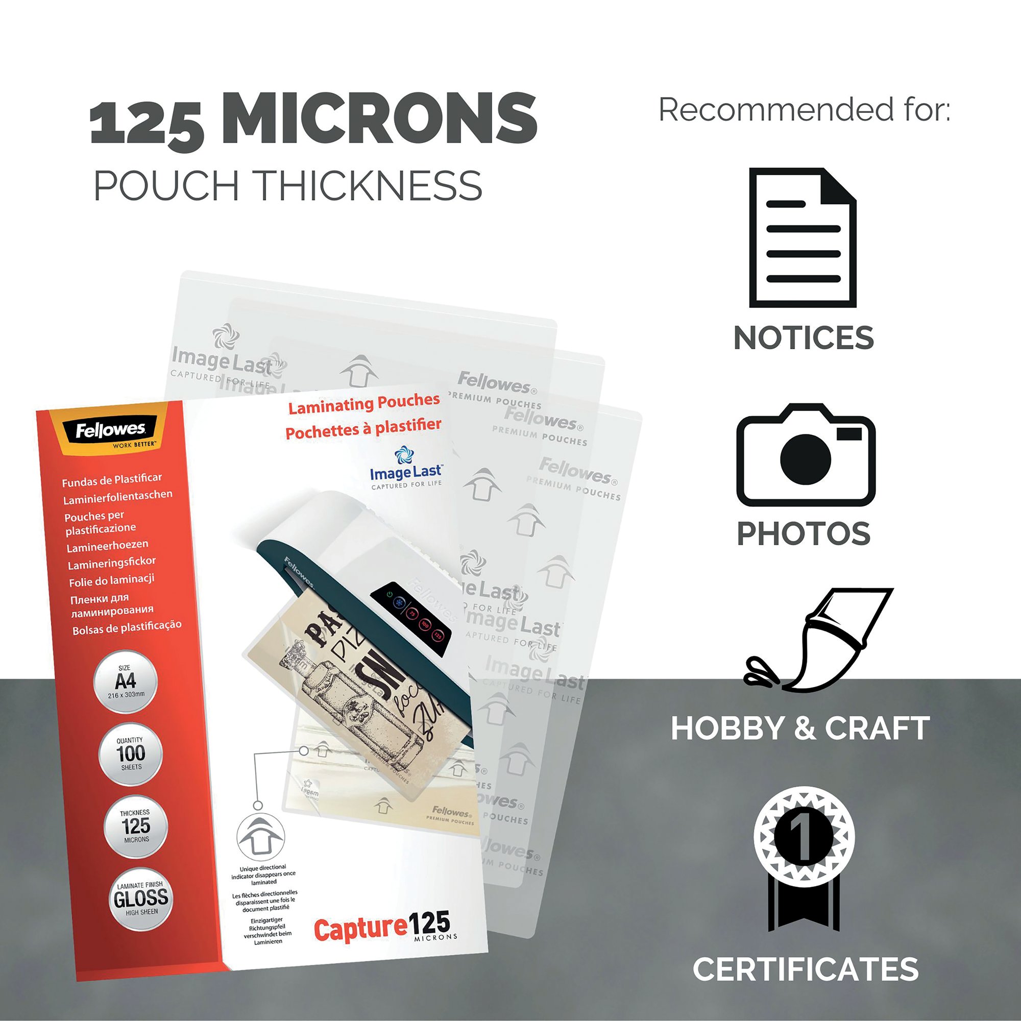 • Fellowes laminating pouches for use with laminating machines