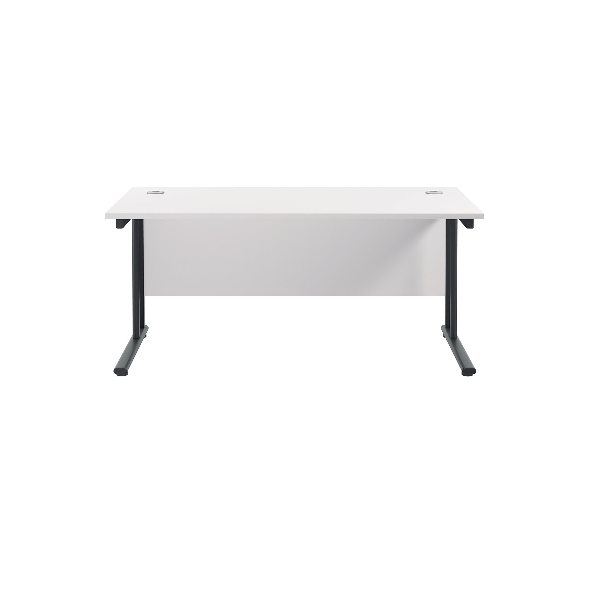 Suitable for use in a variety of office environments, this Jemini Double Upright Rectangular Desk features a 25mm thick desktop with dual 80mm cable management ports to keep workspaces tidy and free from wires. The desk includes a modesty panel as standard and the double upright cantilever legs offer improved stability.