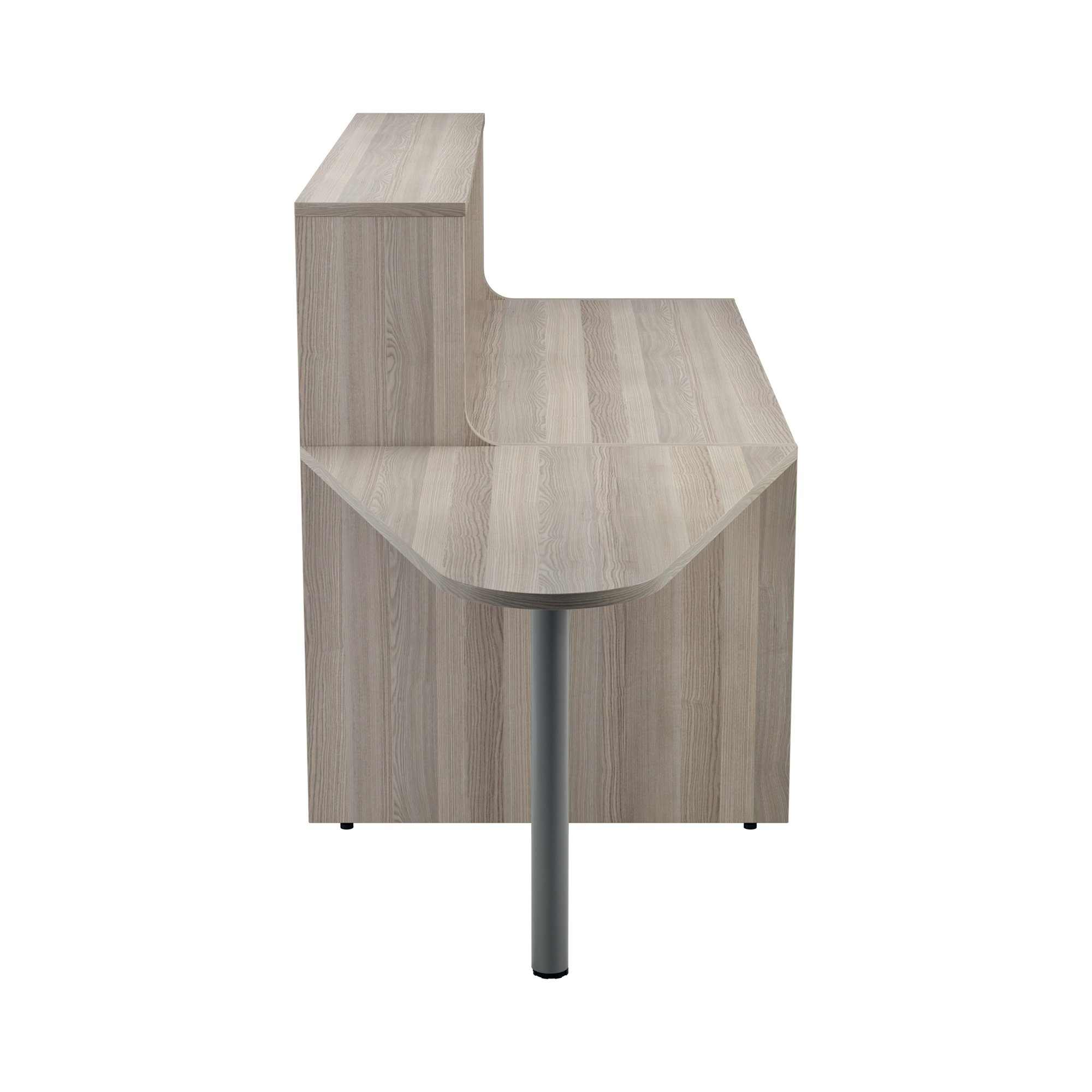 With clean and elegant lines, this Jemini Reception Unit is ideal for use in a variety of reception areas. The modular design features a built-in modesty board as standard, as well as a sturdy 25mm thick desktop. The extension unit allows extra desk space or to allow access for wheelchair users. This reception unit comes with an extension and is finished in Grey Oak.