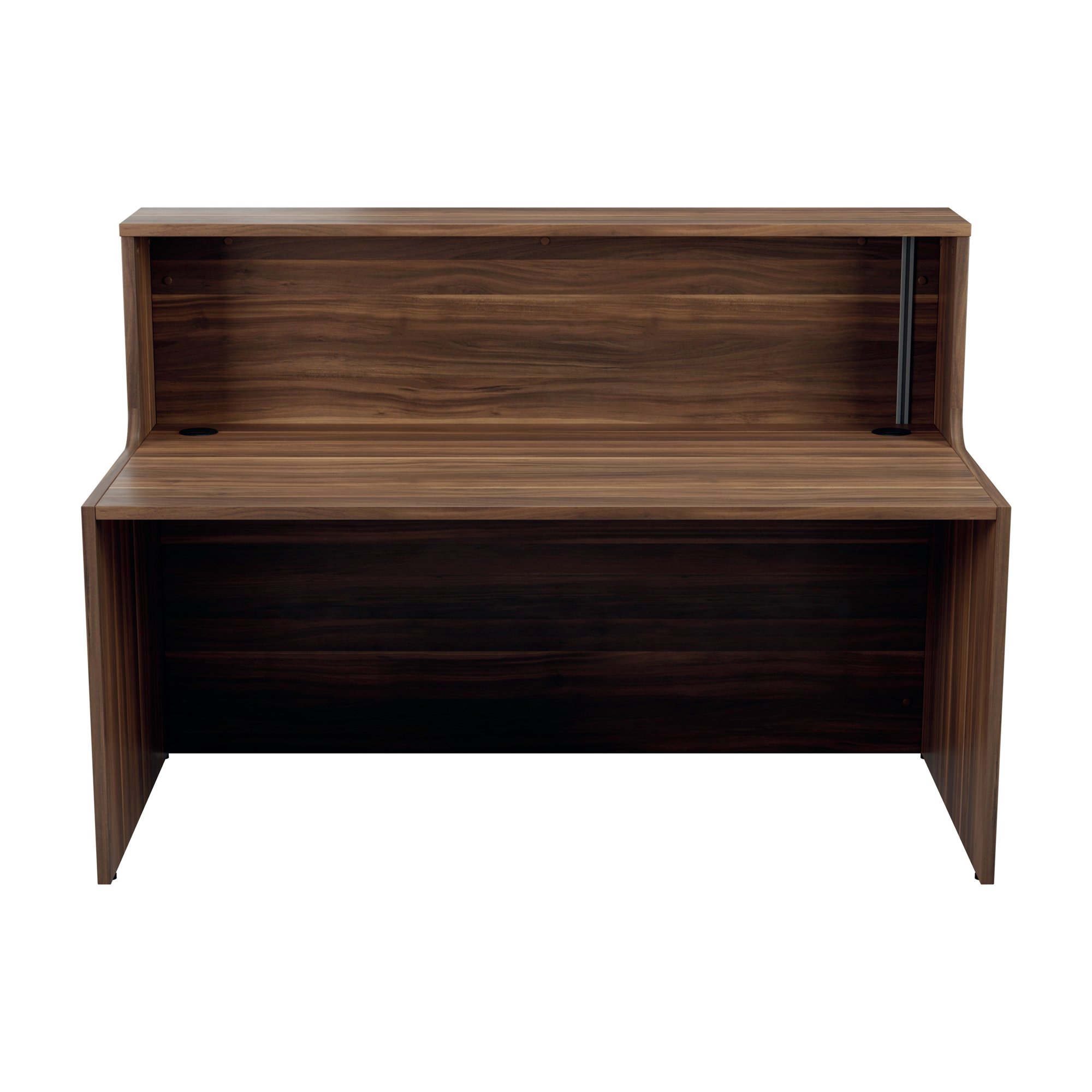 With clean and elegant lines, this Jemini Reception Unit is ideal for use in a variety of reception areas. The modular design features a panel end construction incorporating a fixed riser unit. The unit has a sturdy 25mm thick desktop. This reception unit measures 1600x800x740mm and is finished in Dark Walnut.