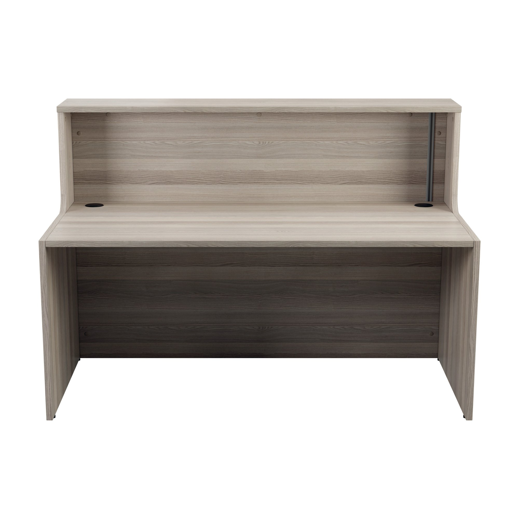 With clean and elegant lines, this Jemini Reception Unit is ideal for use in a variety of reception areas. The modular design features a panel end construction incorporating a fixed riser unit. The unit has a sturdy 25mm thick desktop. This reception unit measures 1600x800x740mm and is finished in Grey Oak.