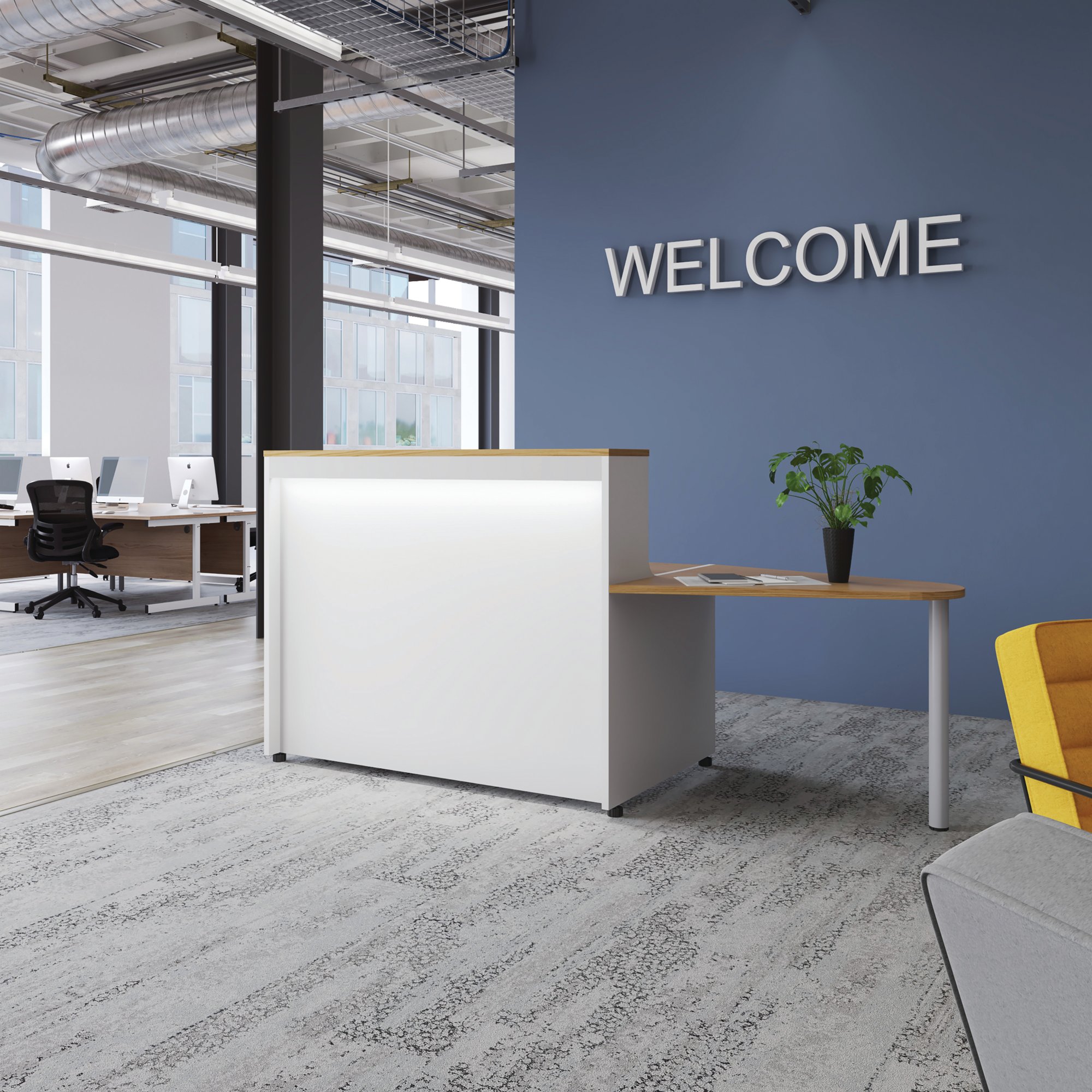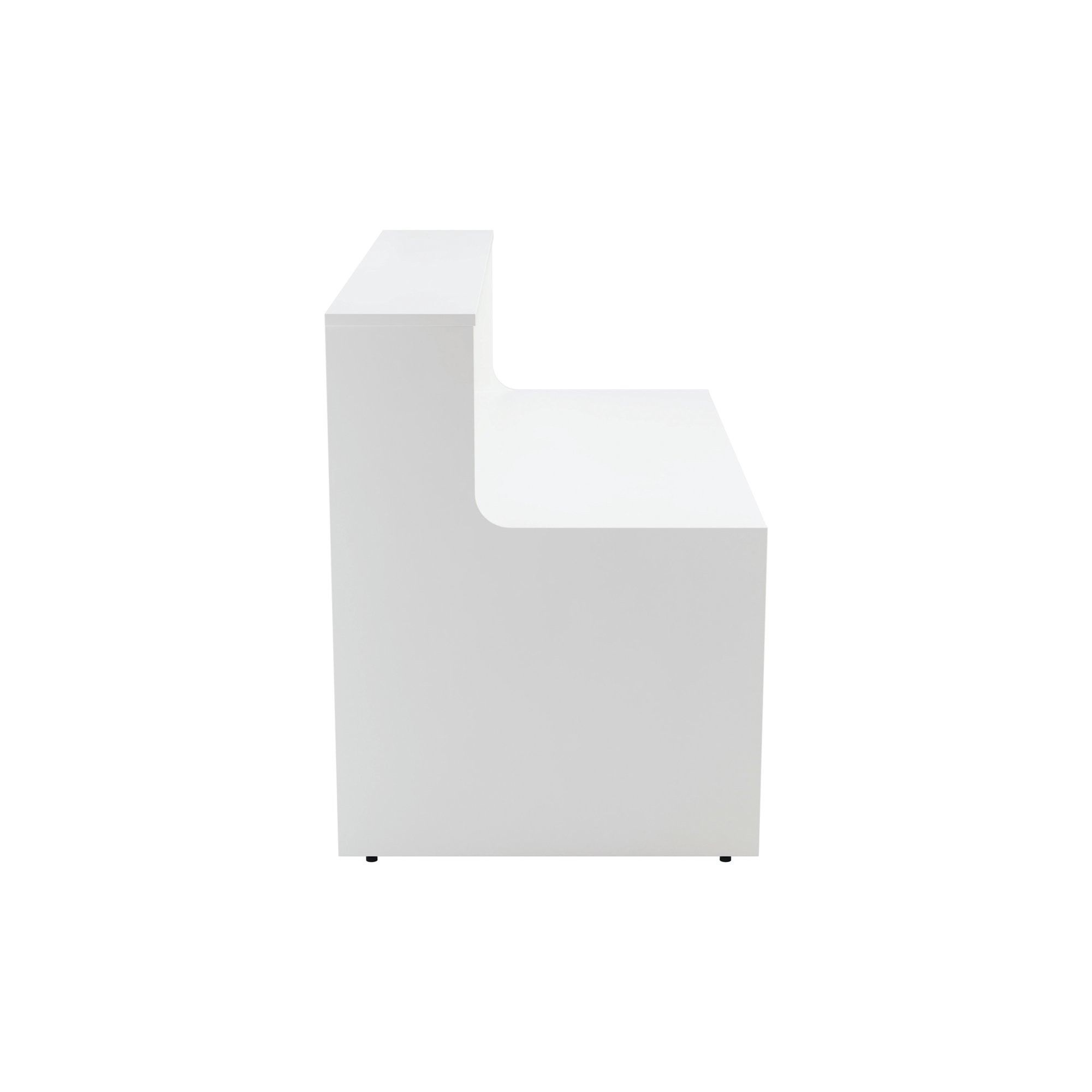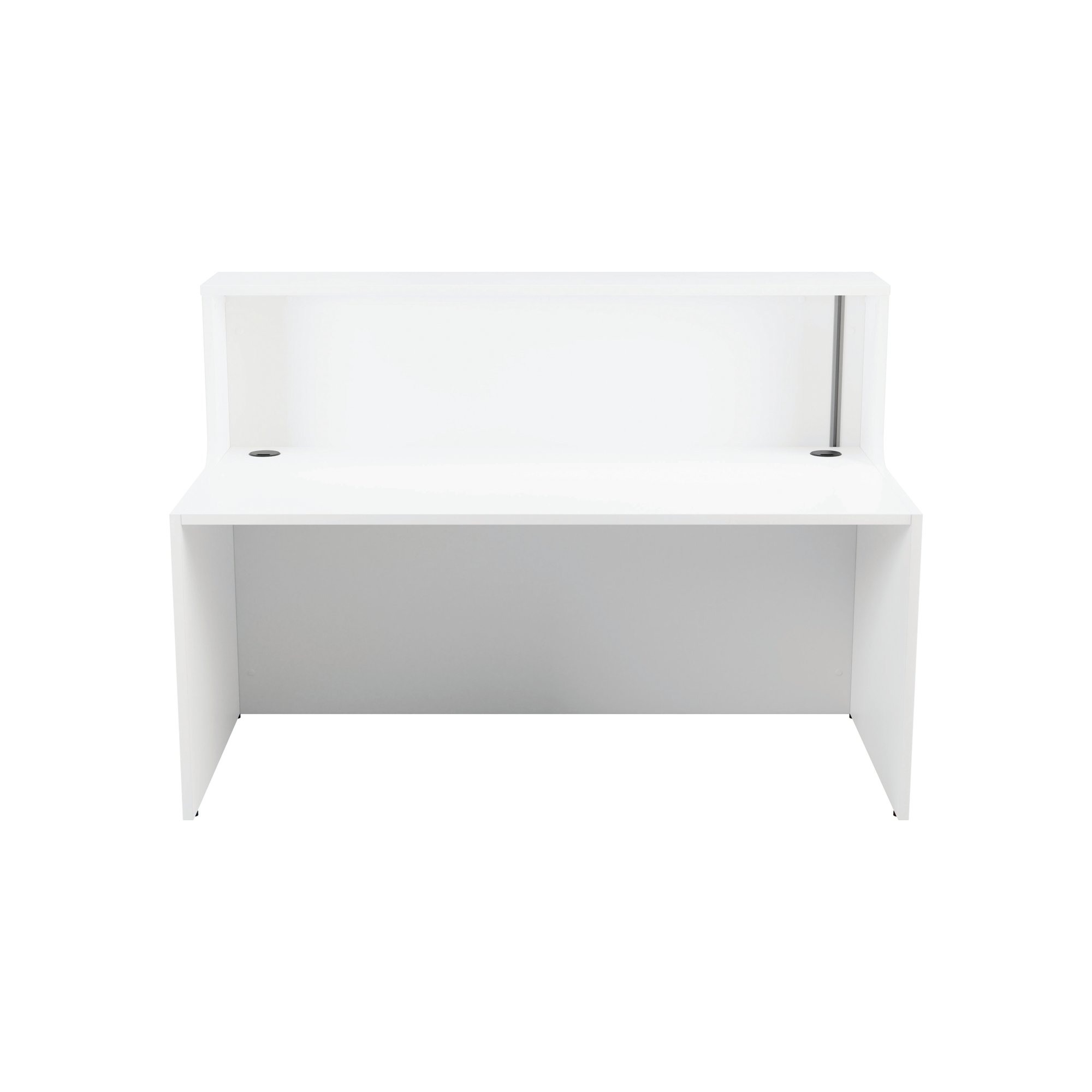 With clean and elegant lines, this Jemini Reception Unit is ideal for use in a variety of reception areas. The modular design features a panel end construction incorporating a fixed riser unit. The unit has a sturdy 25mm thick desktop. This reception unit measures 1400x800x740mm and is finished in White.