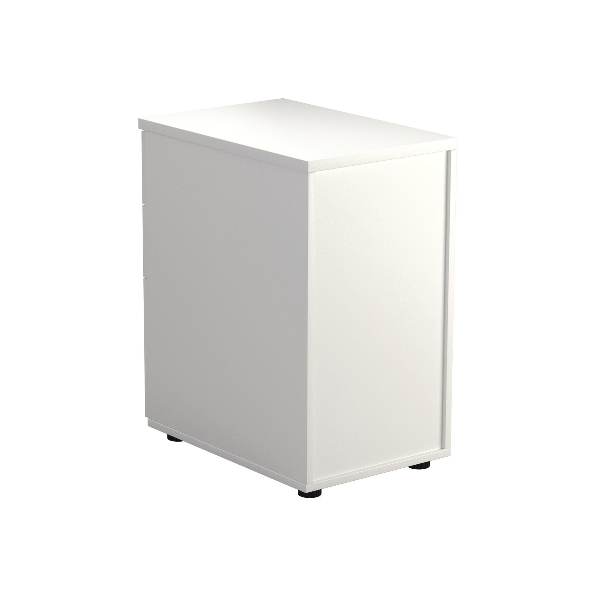 Offering a convenient and flexible place to store documents, papers and stationery, this white desk high pedestal can fit conveniently next to your desk to provide additional work space. The pedestal features 2 box drawers and 1 filing drawer suitable for foolscap suspension filing. This pedestal measures W400xD600xH730mm and can be placed beside the 600mm end of a radial desk.