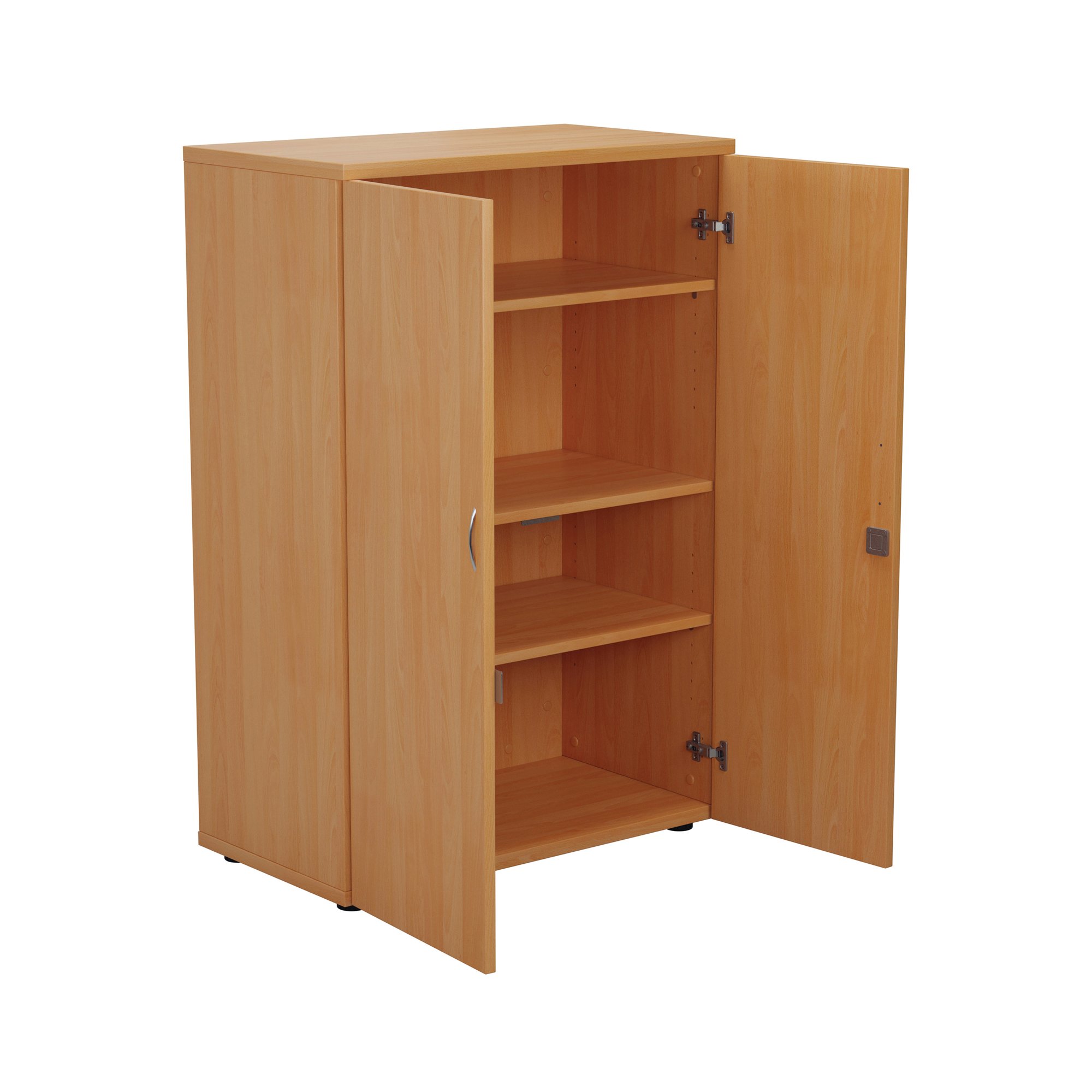 This First Cupboard provides a convenient storage solution for organised office filing. Complete with three shelves, this cupboard is suitable for filing and storing lever arch and box files and includes two lockable doors. The cupboard measures W800 x D450 x H1200mm and comes in a beech finish to complement the First furniture range.