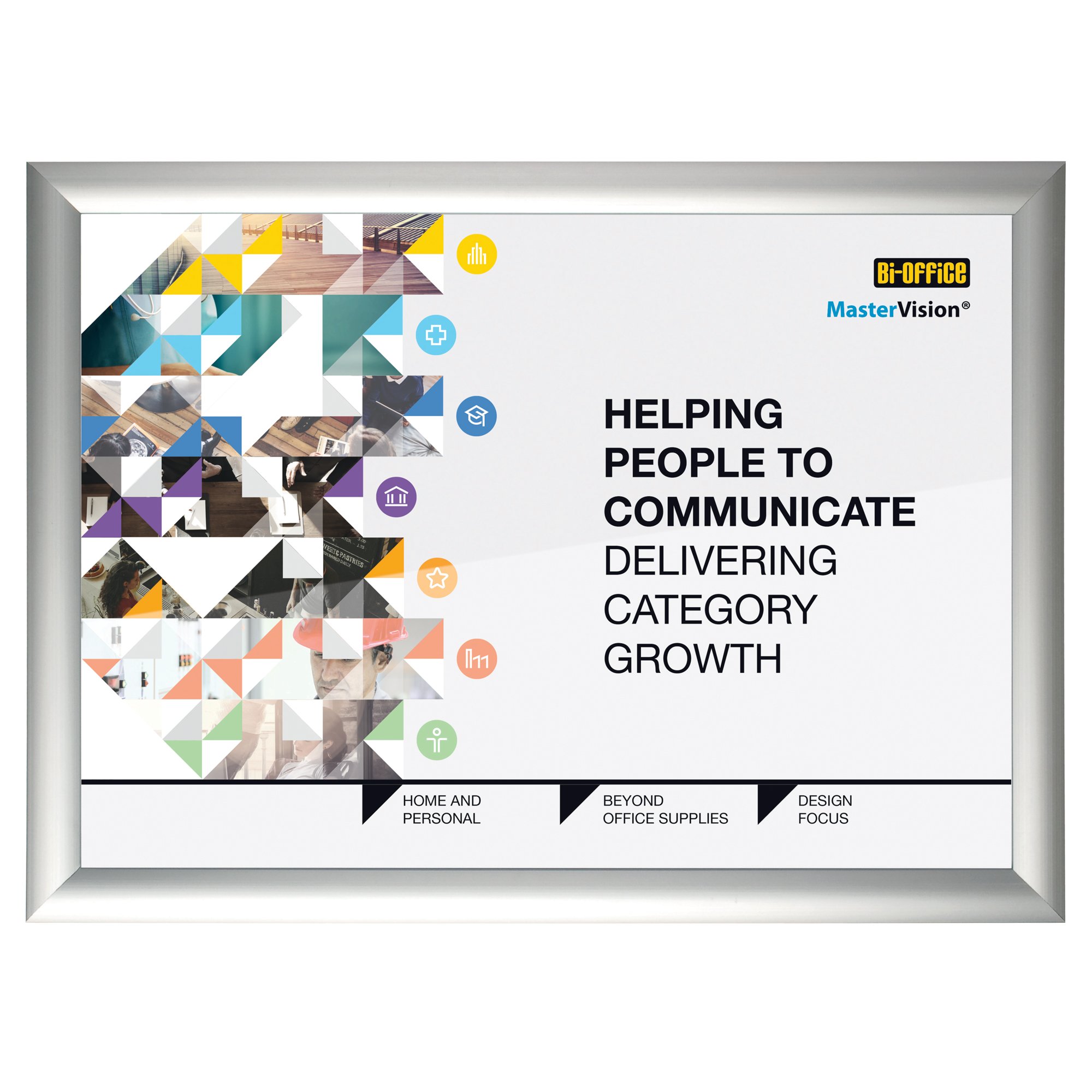 Ideal for displaying posters, information, promotions and more, this Bi-Office Snap Frame features an aluminium frame that snaps open easily, enabling you to quickly change the contents. Ideal for retail, education and general office use, the frame features a clear plastic cover to protect contents. Supplied with a wall fixing kit, this frame is suitable for A3 signs and posters.