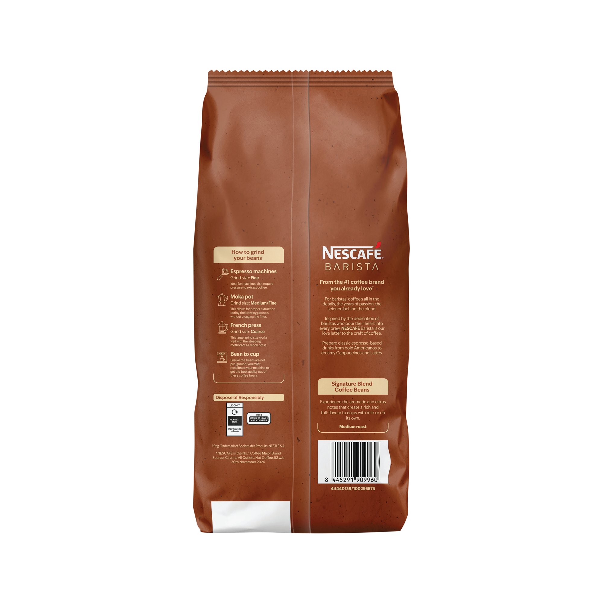 Nescafe Barista Signature Blend coffee beans help you perfect every coffee moment. Crafted for professionals, these medium roasted coffee beans offer a smooth, delicate taste with a level 7 intensity.