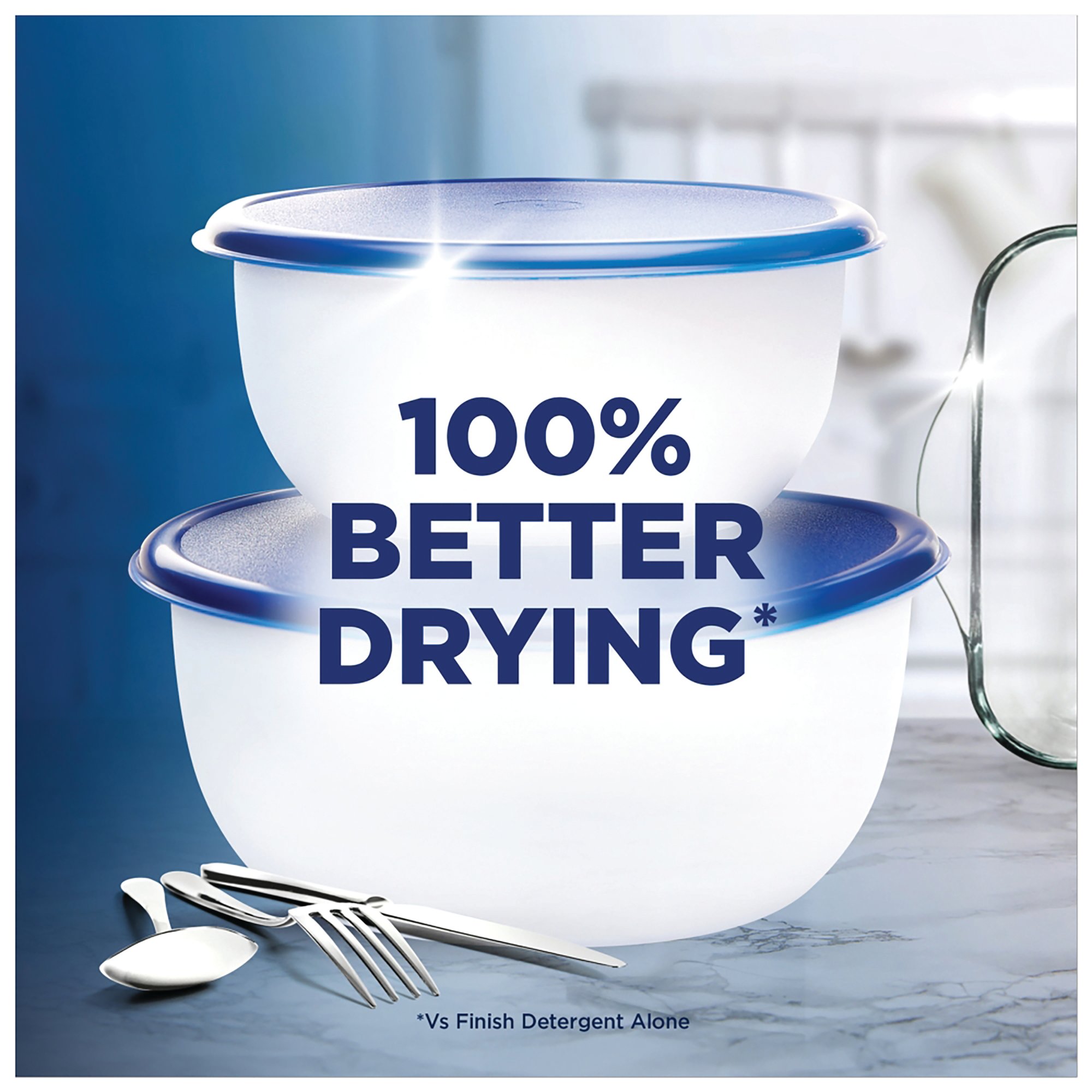 Finish Rinse Aid is a quick drying formula actively dries dishes and glasses for a brilliant shine. Offering film protection to prevent stains, it fights water spots and speeds up drying time by dispersing water droplets, leaving dishes streak-free and ready to use again.