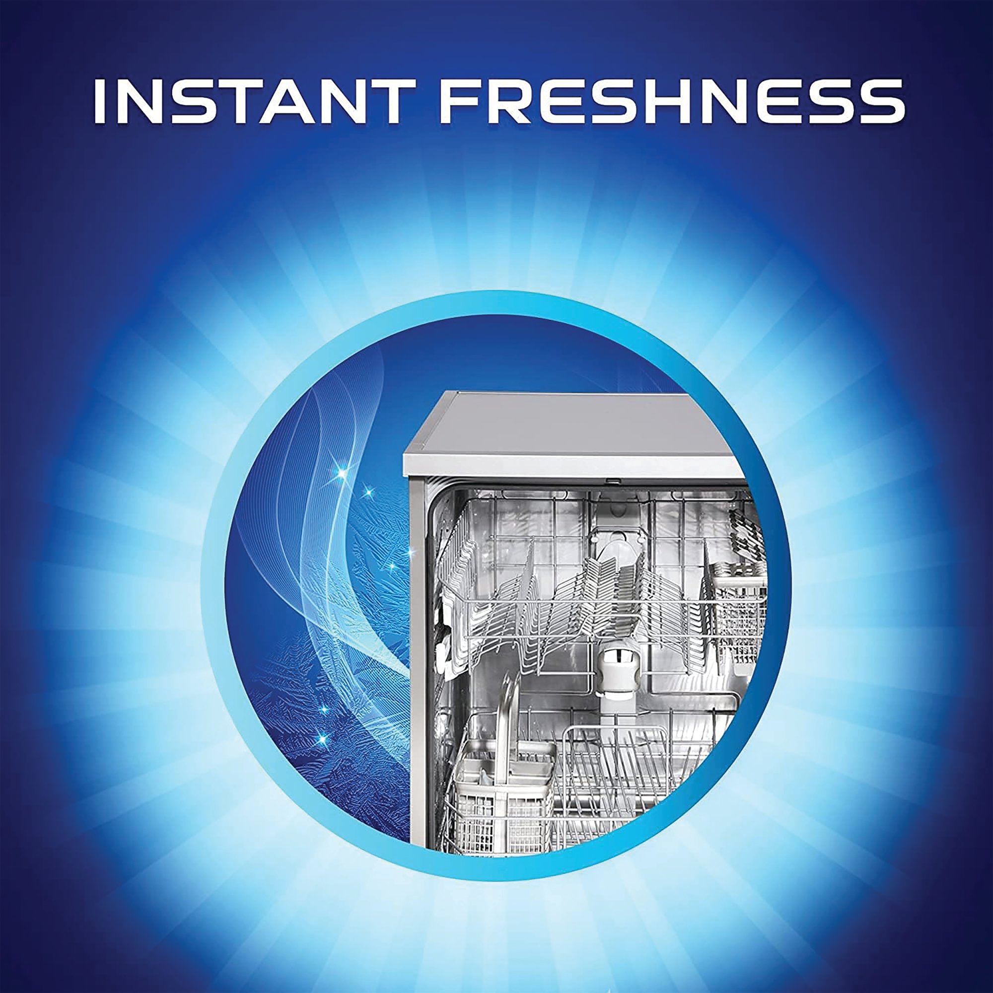 Between washes, residues might lead to malodour developing in the dishwasher. This Finish freshener has a unique Scent Control technology designed to give a refreshing clean, fresh scent every time the dishwasher is opened, helping to avoid any fragrance transfer on dishes during the wash. Simply clip the freshener onto a rack or hang it from the upper rack of the dishwasher, without it blocking the spray arms. Once the liquid inside disappears (approximately 60 washes), replace the whole gadget.