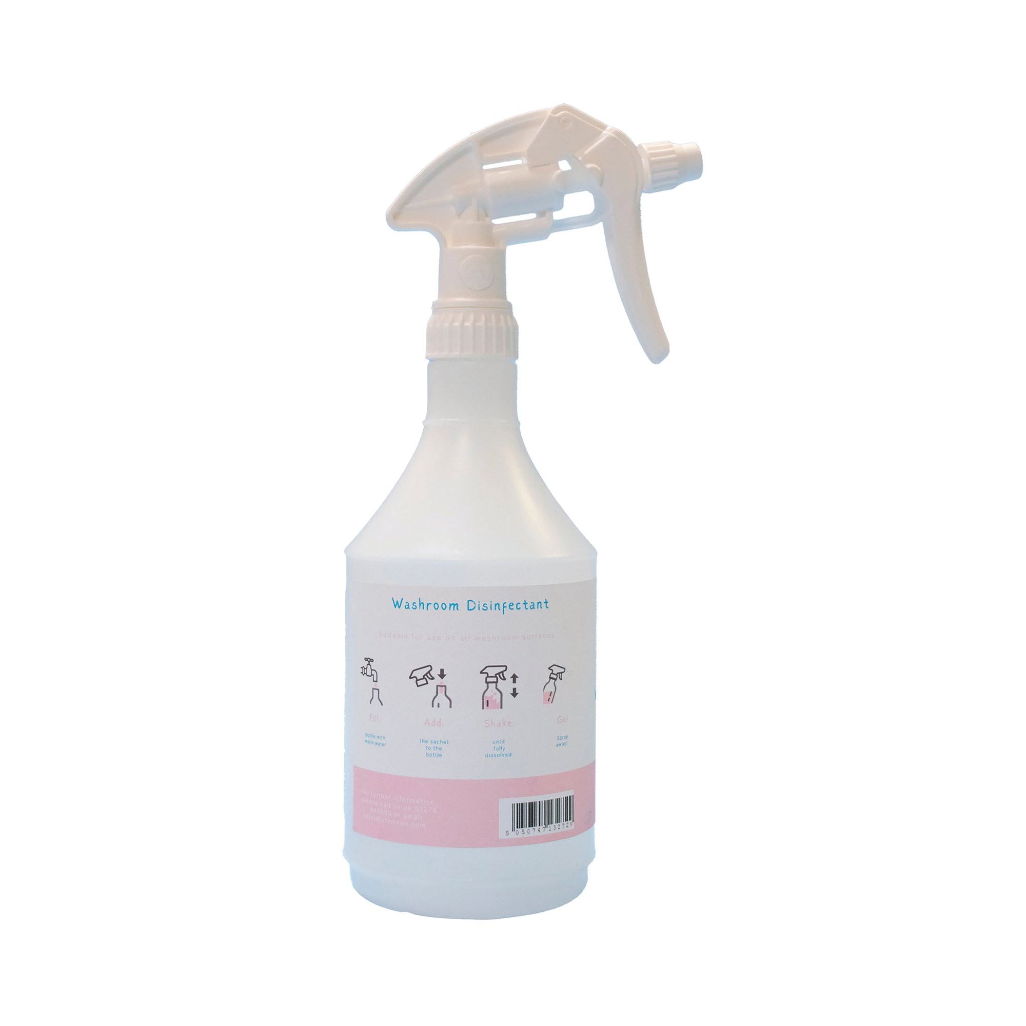This Zilch, durable, 750ml, refillable bottle is built for everyday use and is fully recyclable. Made from 100% recycled plastic, sourced from used milk bottles, it is designed with clear product information and a fill line for easy refill. Simply drop in the washroom disinfectant sachet (sold separately), fill with water, give it a shake and it is ready for use.