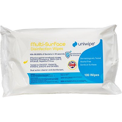 Convenient and highly effective, Uniwipe multi-surface disinfectant wipes provide outstanding cleaning performance and are active against bacteria, fungi, and viruses. Capable of cleaning, sanitising and disinfecting in one swift swipe, these cleaning wipes are the perfect choice for medical environments, offices, schools, homes, vehicles and more.