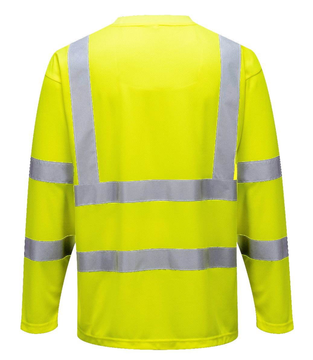 This long sleeved polyester t-shirt offers maximum visibility, while the fabric provides moisture wicking properties to keep you cool and comfortable. Features include a taped neck seam and a generous fit for extra comfort.