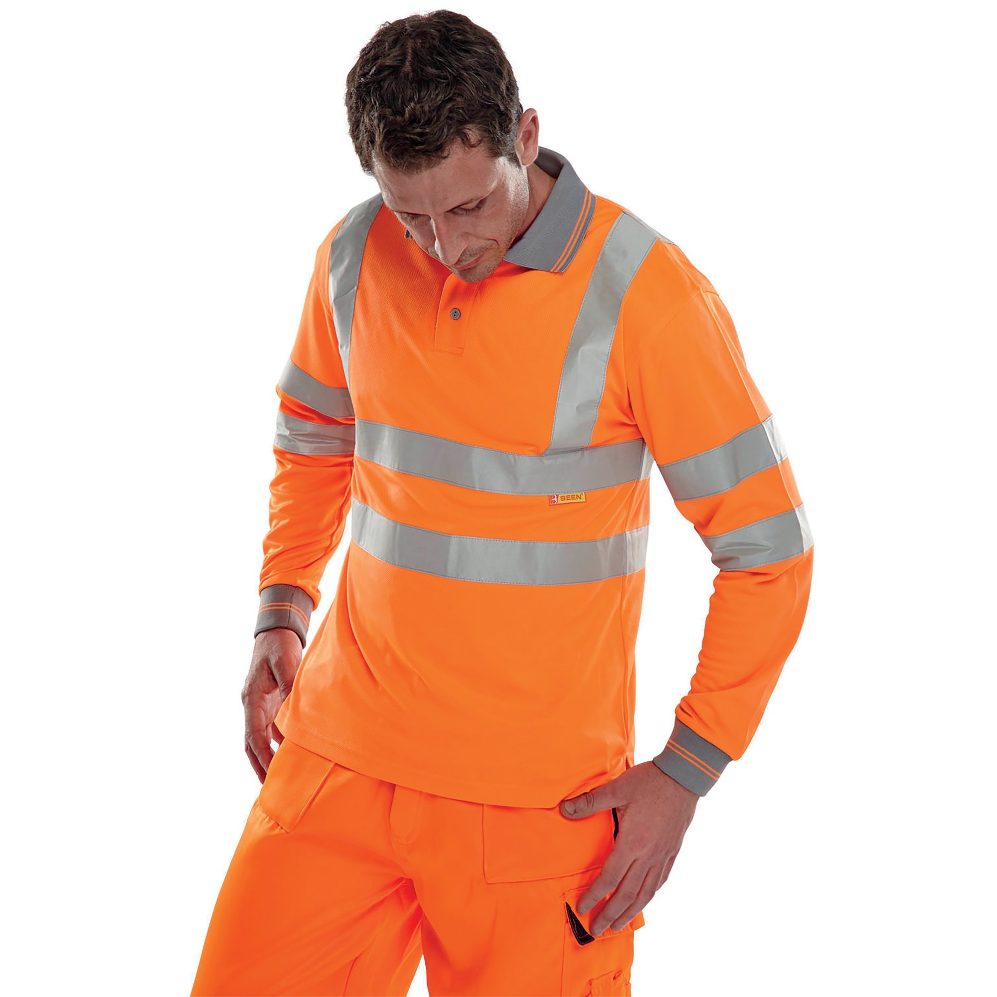 Beeswift Hi Vis Long Sleeve Polo Shirt Orange Large BPKSLSENORL