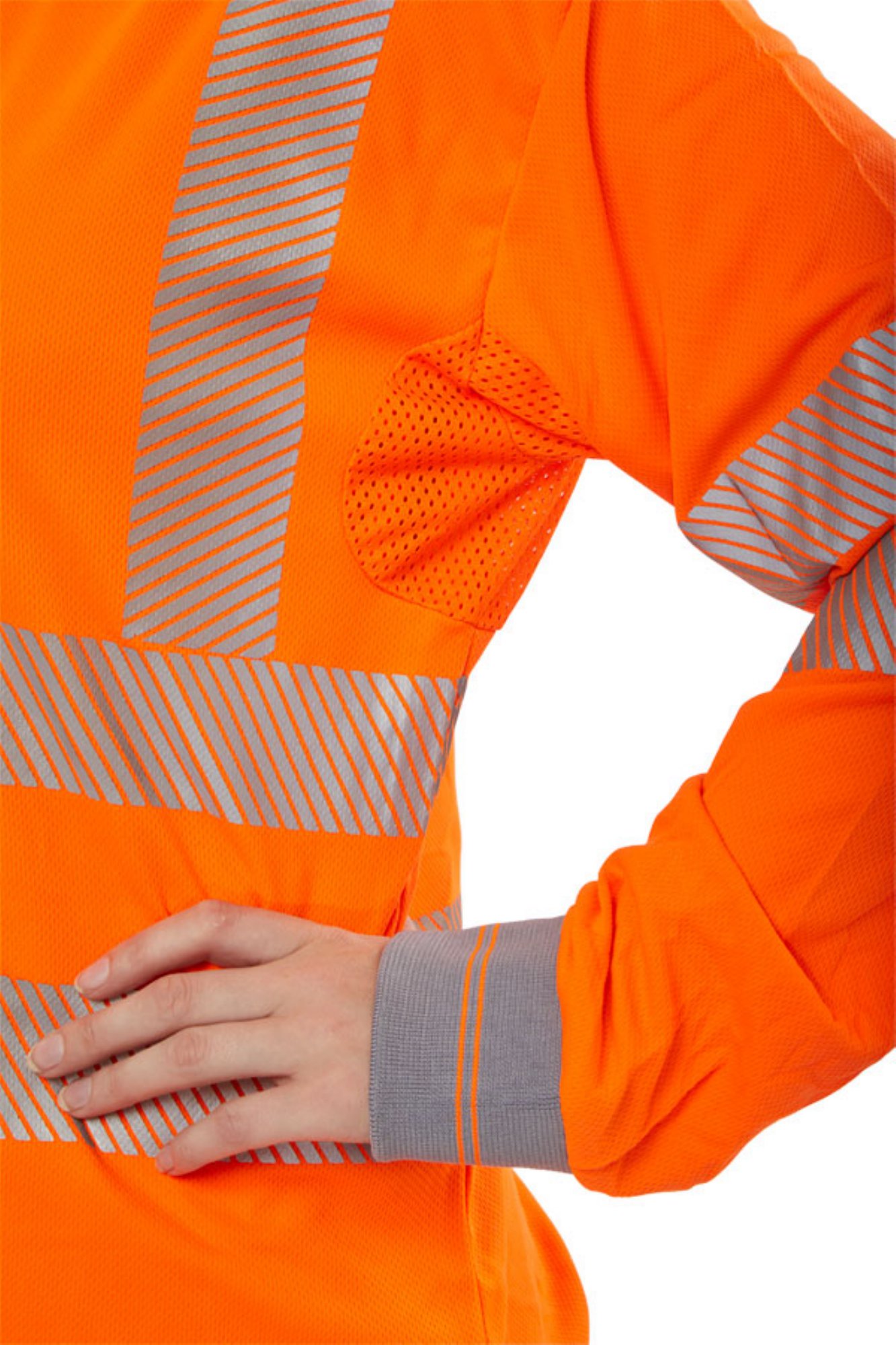 Beeswift High Visibility executive long Sleeve polo made from 100% polyester Bird Eye fabric. Featuring 3 button placket, grey trim to collar and cuffs, mesh underarms, retro-reflective dynamic stripe tape and UV protection. This polo is anti-bacterial and insect repellent and has SCOTCHGARD moisture management. Machine washable at 40 degrees C up to a maximum of 25 wash cycles.
