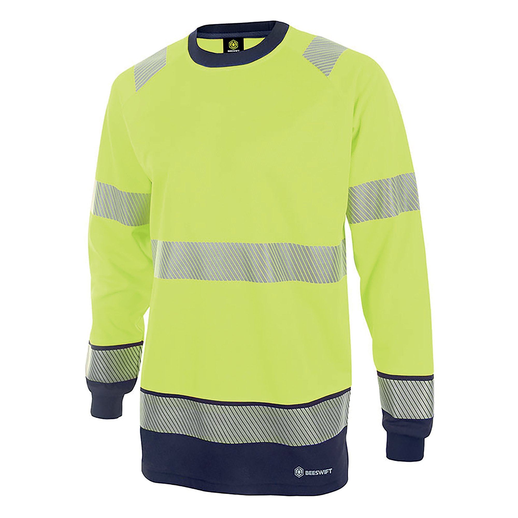 Beeswift High Visibility Two Tone Long Sleeve T-Shirt Saturn Yellow/Navy Blue L HVTT005SYNL