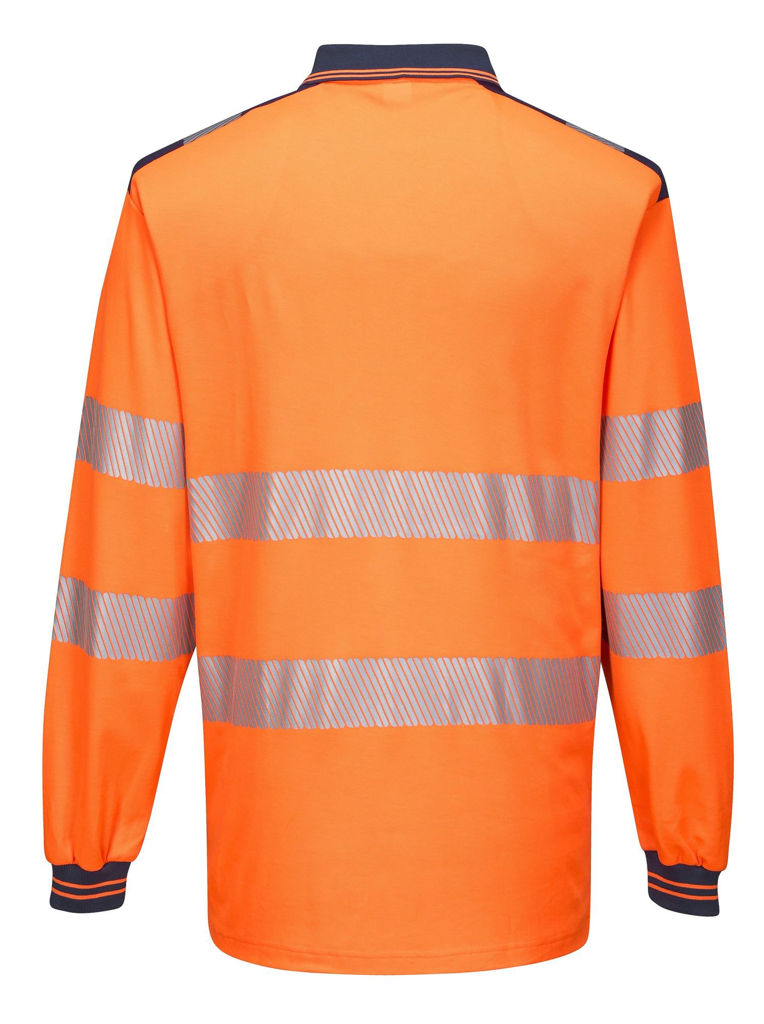 Portwest PW3 Hi Vis Cotton Comfort Polo Shirt L/S XL Orange/Navy