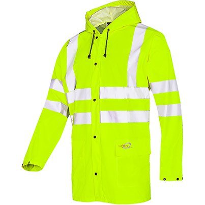 Stay sheltered from the elements while remaining highly visible with the Sioen Eshton rain jacket, a waterproof coat designed specifically to keep you dry and Comfortable in changeable weather. Design features include a sturdy fixed hood as well as adjustable cuffs on the narrow sleeves for added protection from wind and rain.