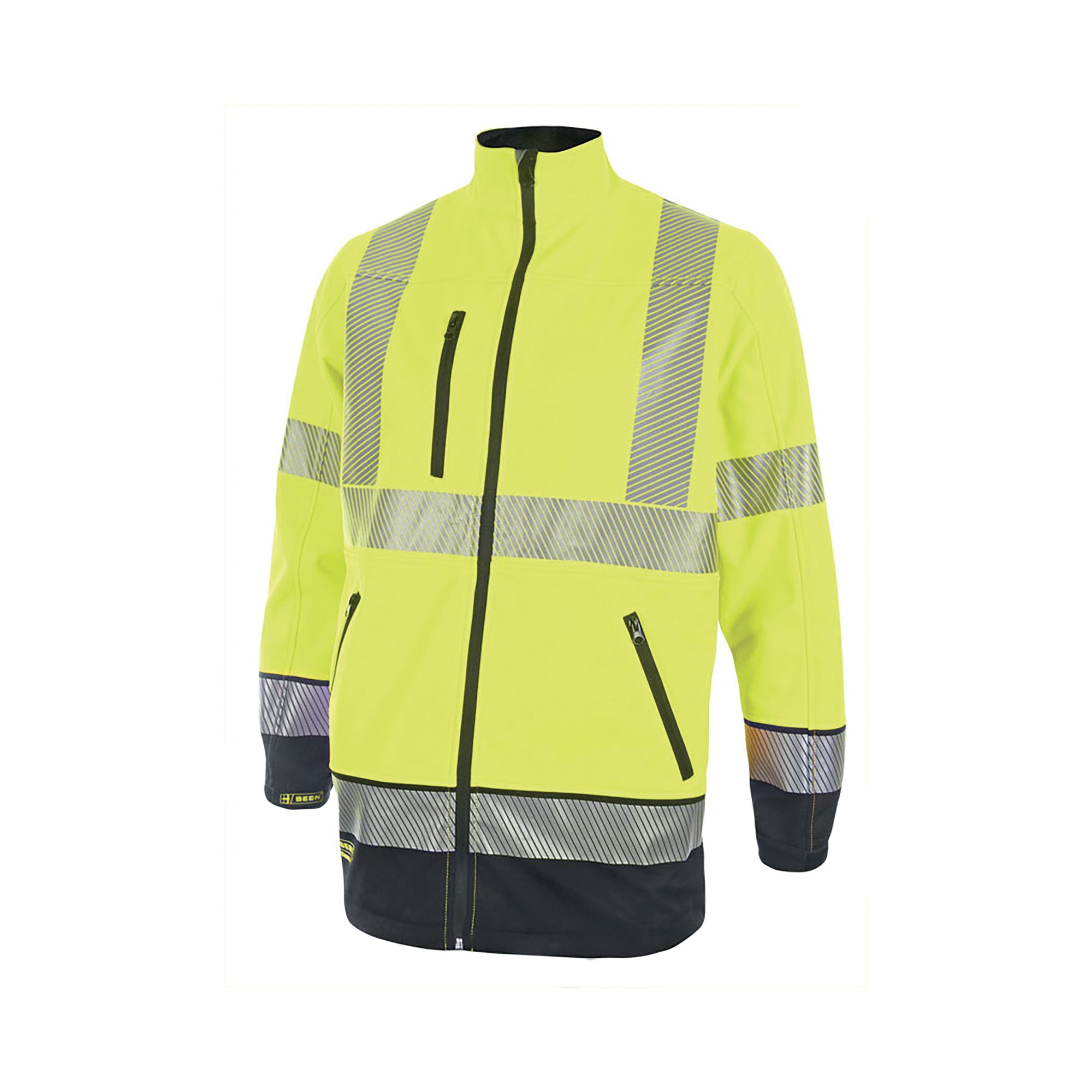 Lightweight and comfortable, this Beeswift High Visibility Two Tone Softshell Jacket is made from windproof, breathable fabric. Backed with fleece, with a full length zip to neck, this cosy fleece also features two angled hip pockets for comfort. Designed in a two-tone colour with Retro-reflective tape, the jacket conforms to EN ISO 20471 Class 3 High Visibility.