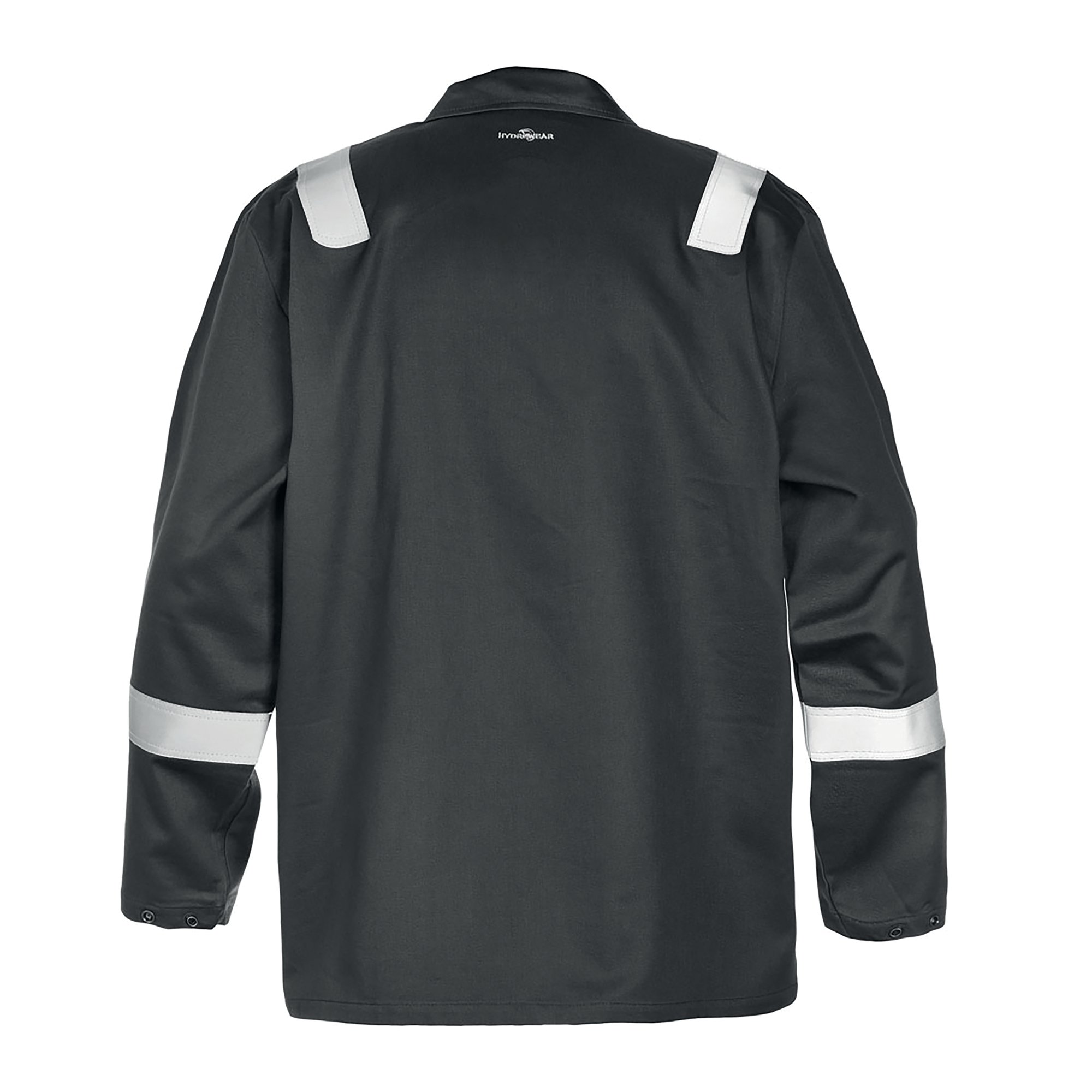 Concealed front press stud closure. 2 chest pockets. 2 side pockets. Gas detection loop. Adjustable cuffs using press stud closure. Nordic design reflective tape. Flame retardant and Anti-static. Chief Value Cotton (CVC). 80% cotton. 19% Polyester. 1% Anti-static fibre. 320 gsm Satin weave. Conforms to the following standards:. EN ISO 13688:2013 Protective clothing general requirements. EN ISO 11612:2015 (A1 B1 C1 E3) Protection against heat and flame. EN ISO 11611:2015 Class 2 A1 Protective clothing for use in welding. EN ISO 14116:2015 (Index3). EN 13034:2005+A1:2009 Chemical protective clothing (type 6). EN 1149-5:2018 anti-static material performance and design requirements. EN 61482-1-2:2007 (Class 14kA) Box Arc testing.
