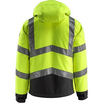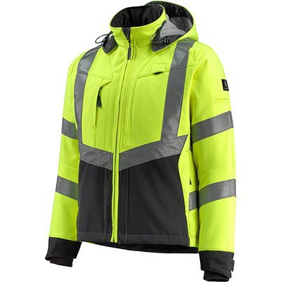 This super stylish hi-vis softshell jacket contains lots of features to help you look good and stay safe at work. The highly visible colour is accentuated with a chevron design and finished with a contrast colour at the base and cuffs where dirt is most likely to gather, helping you to stay looking sharp after a hard day's work. This MASCOT jacket is highly durable too, with abrasion-resistant CORDURA reinforcements at the wrist and a ripstop fabric to guard against wear and tear. Handy pockets and a detachable hood add practicality to ensure that this hi-vis jacket becomes an integral part of your safety workwear.