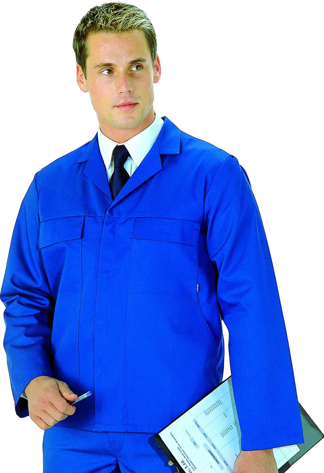 Features of this smart jacket include an action back for comfort and multiple pockets for convenience.