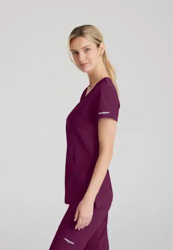 The SK102 Female Reliance V neck scrub top is a modern design great for stylish healthcare staff. With 7 recycled bottles in every top.