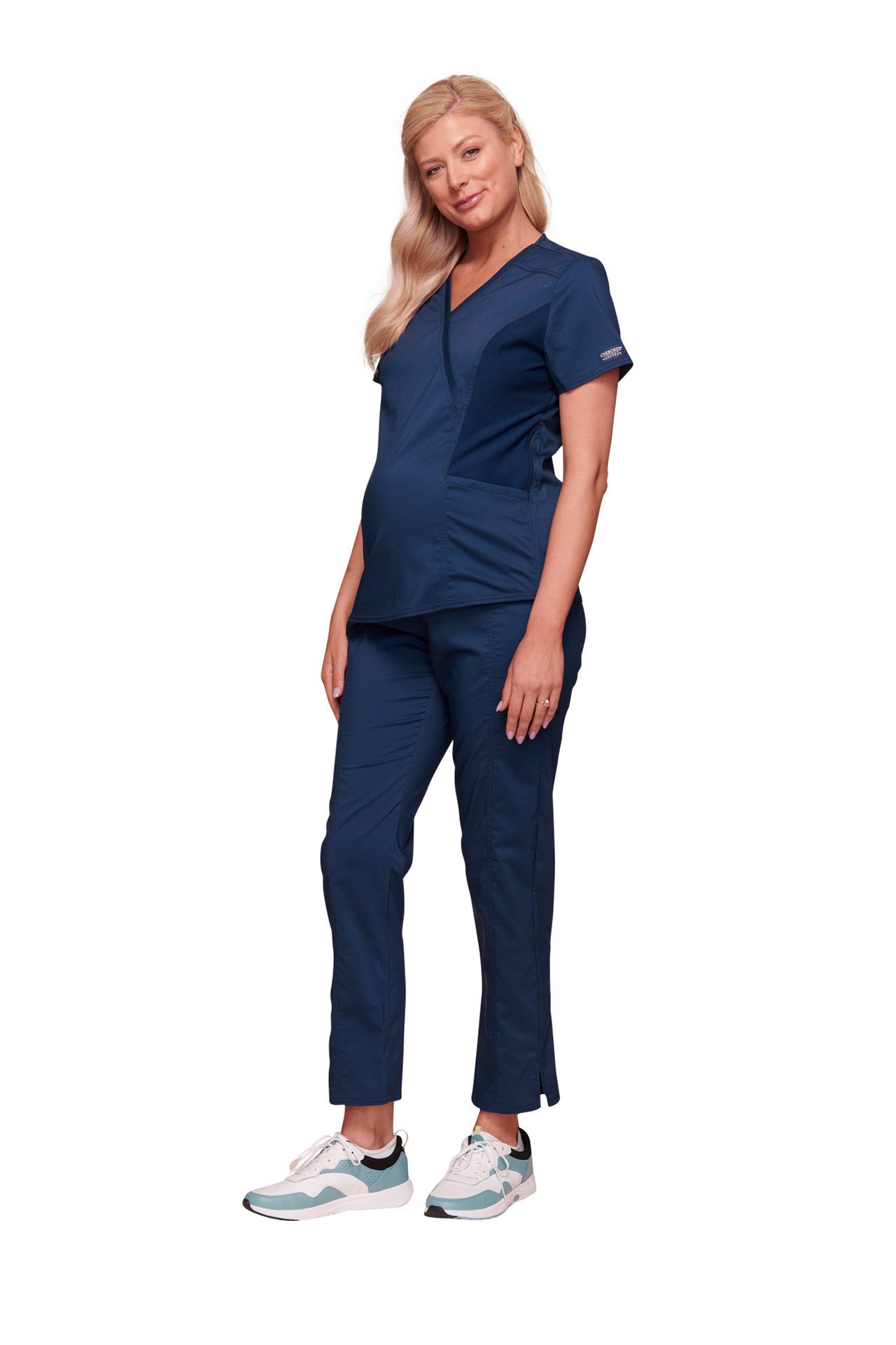 A Maternity Scrub top in a mock wrap style for ultimate comfort, the maternity range from Cherokee Revolution is designed to grow with you so you should order your pre pregnancy size.