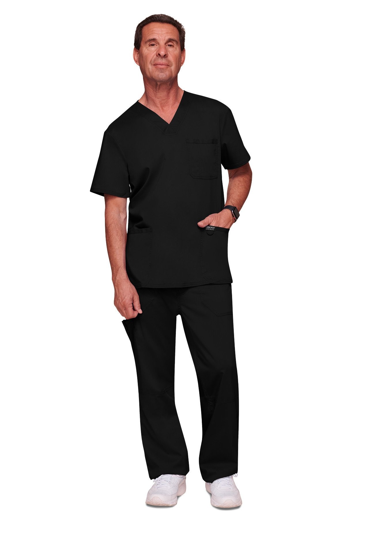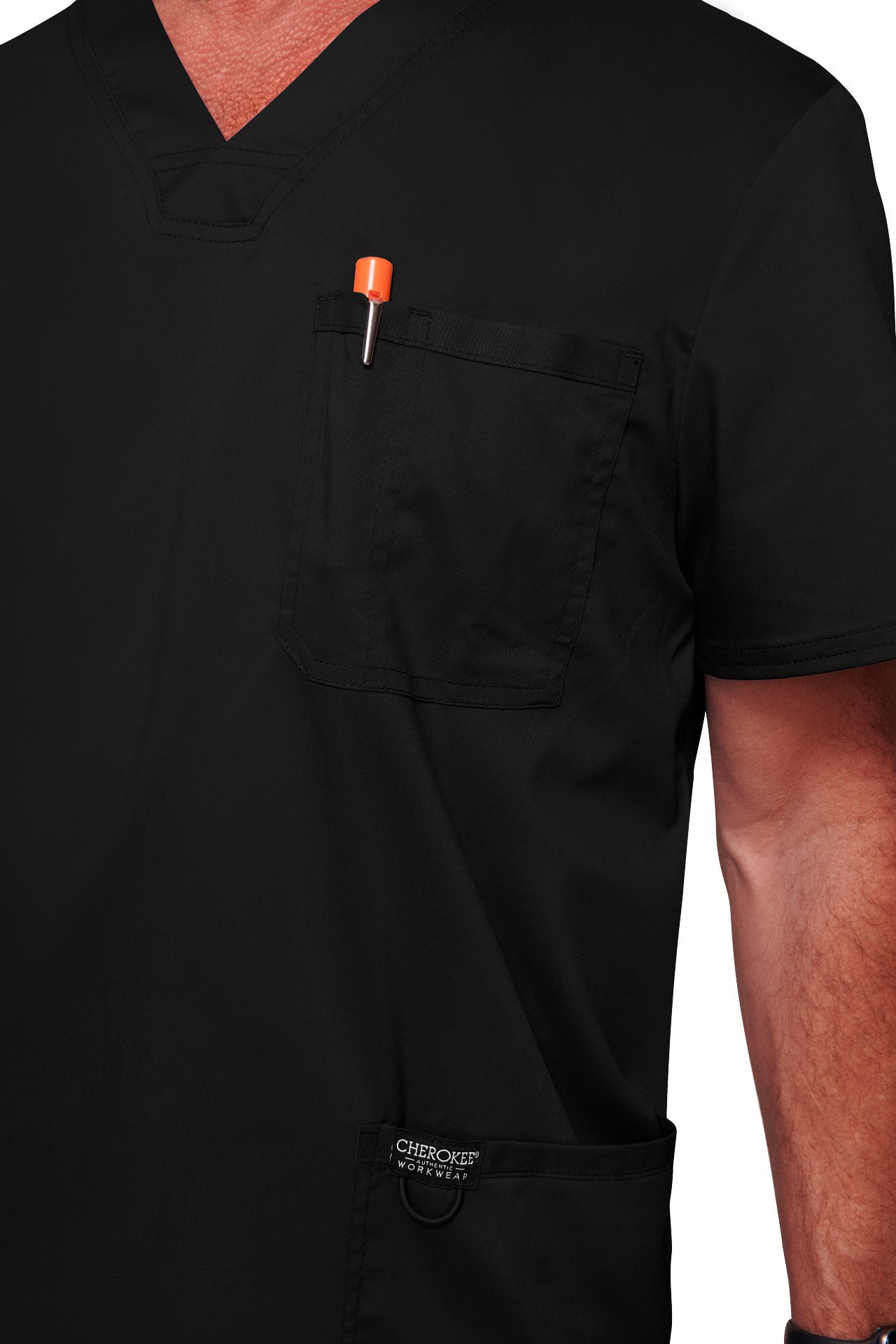 A classic fit V neck scrub top from the Cherokee Revolution range. This is a classic fit scrub top in sizes XXS-3XL to suit all body shapes and sizes. This top is designed with comfort and practicality in mind, with 3 pockets, a bungee loop and side vents.