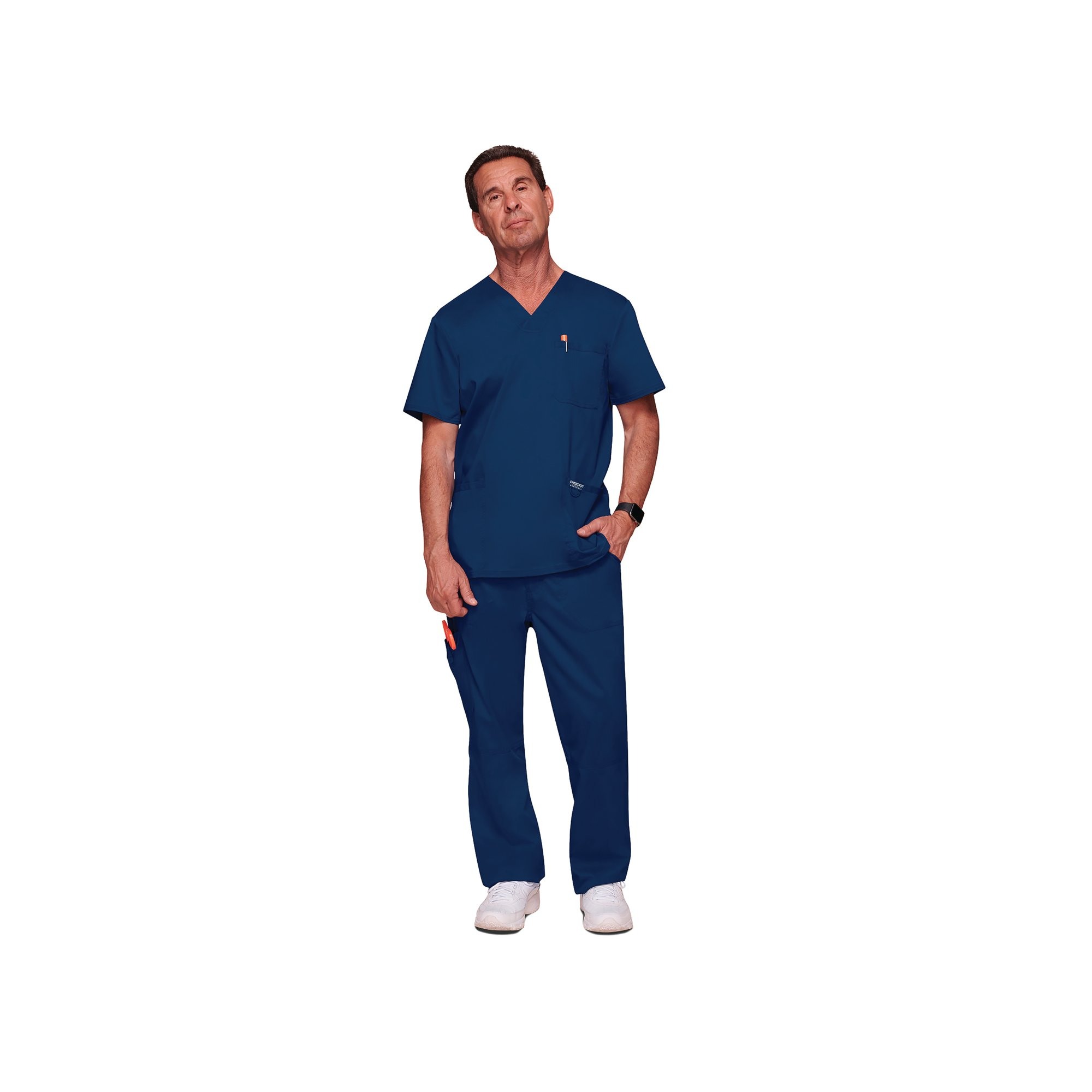A classic fit V neck scrub top from the Cherokee Revolution range. This is a classic fit scrub top in sizes XXS-3XL to suit all body shapes and sizes. This top is designed with comfort and practicality in mind, with 3 pockets, a bungee loop and side vents.
