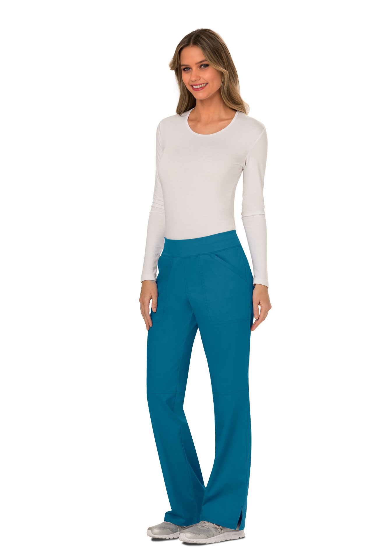 The Cherokee Revolution WW110 Women's Mid-Rise Pull-on Cargo Trouser From the Cherokee Revolution range. The cargo trousers, a classic trouser style with an elasticated waistband for added comfort.
