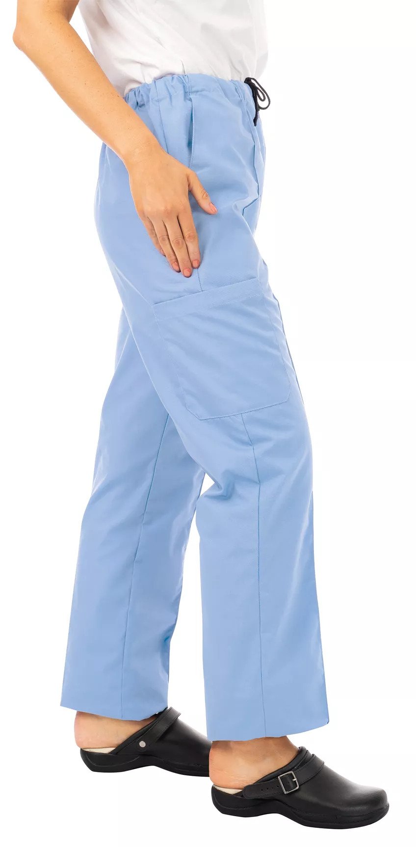 The 334 LWT are lightweight scrub trousers, designed with a comfortable elasticated drawstring waist and featuring one cargo pocket.